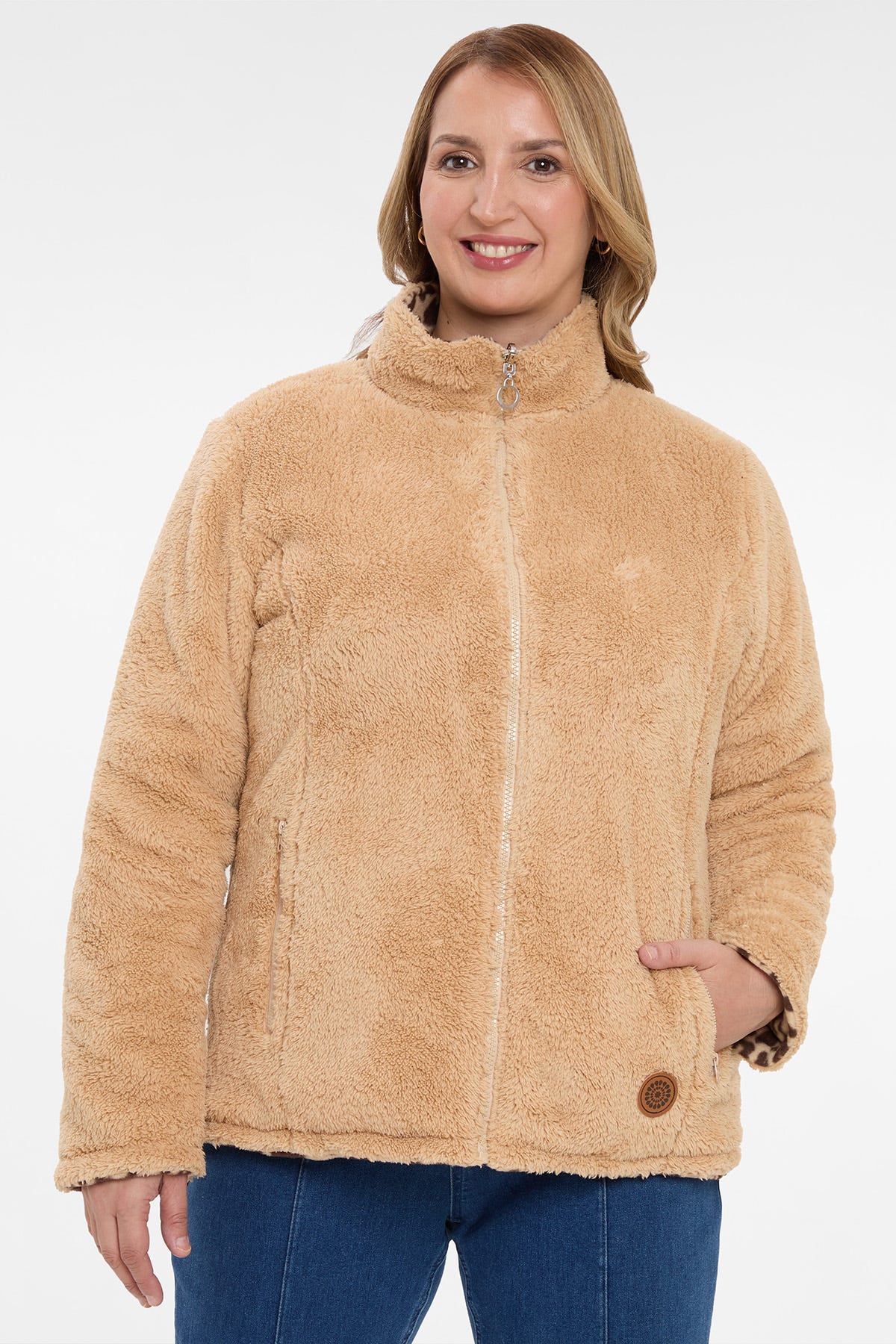 Chaqueta Mujer Animal Print Reversible Beige