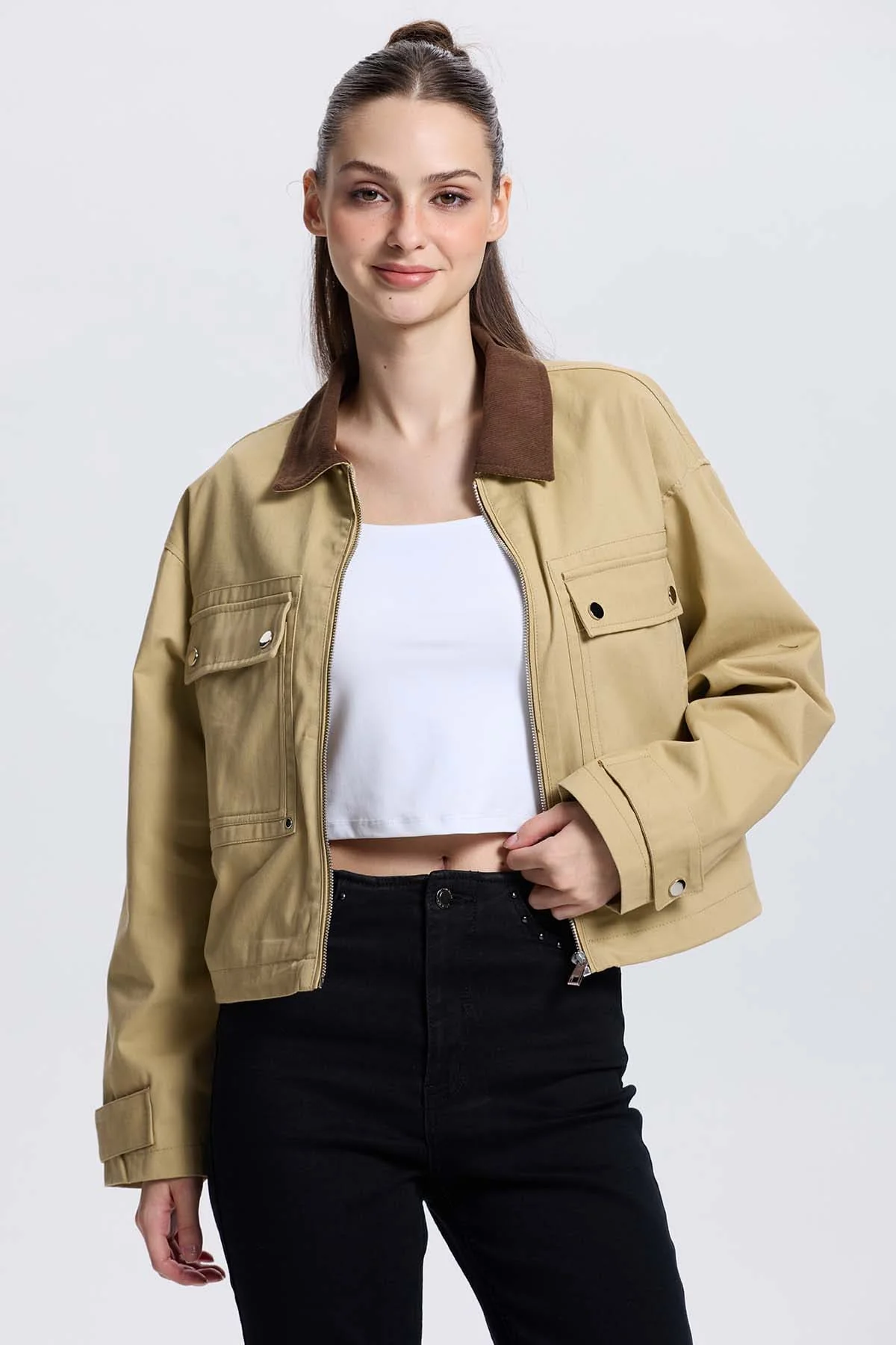 Chaqueta Mujer Bolsillo Beige