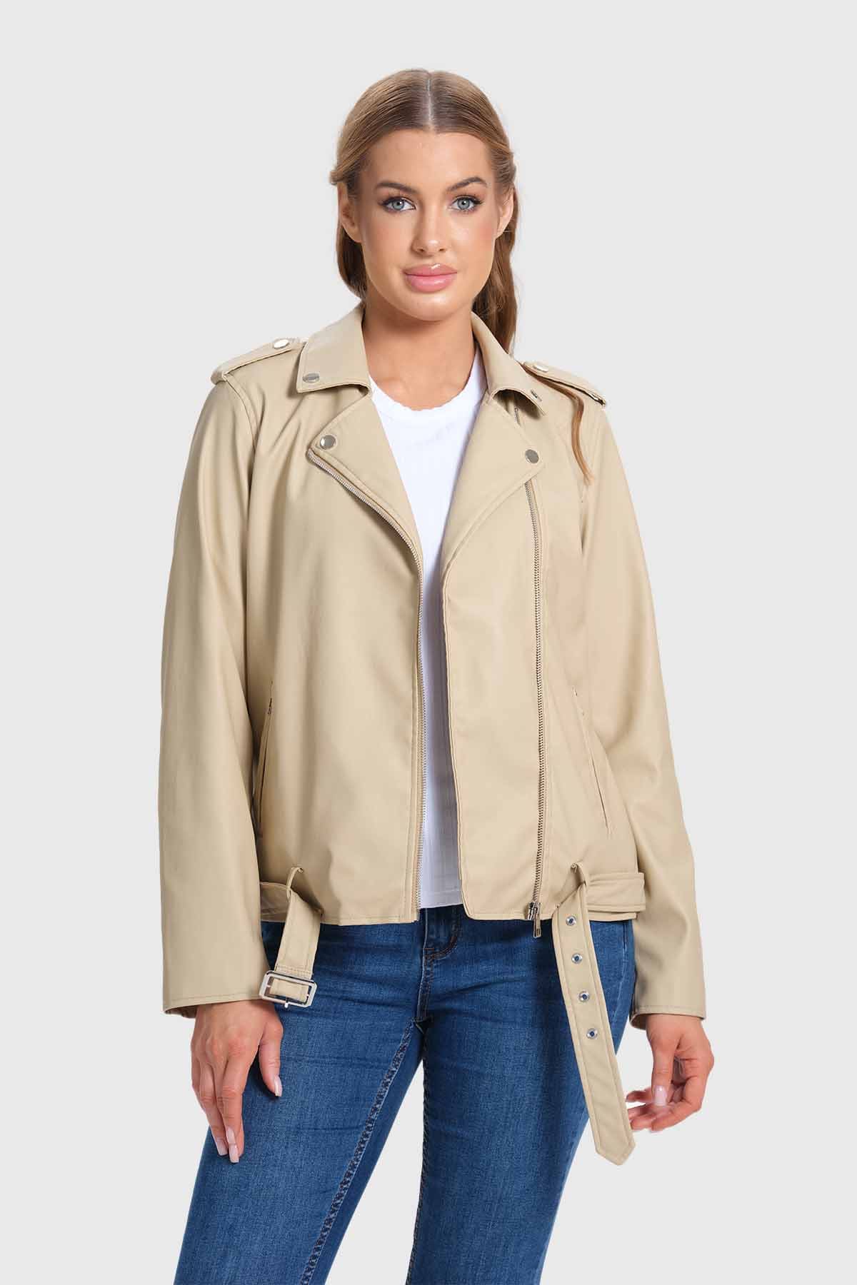 Chaqueta Mujer Biker Beige