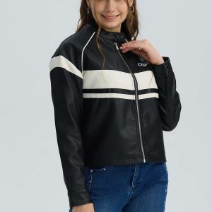 Chaqueta Niña Efecto Cuero Negro