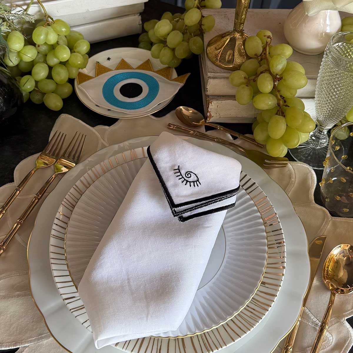 Platos para Pan Verde con Guirnalda Blanca, set de 4
