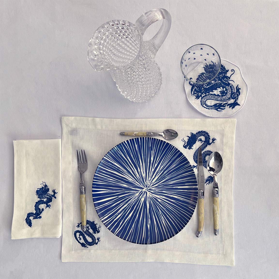 Platos Trinche Azul con Rayas Blancas, set de 4