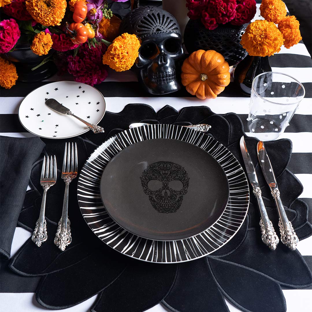 Platos Trinche Negro con Rayas Blancas, set de 4