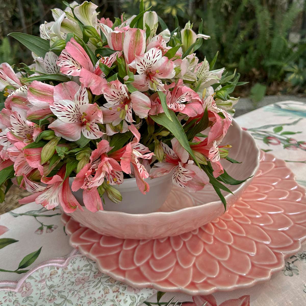 Plato Ensalada Dalia Rosa. Set de 4.