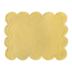 Individuales Vivi en Lino Amarillo con Bordado de Pelitos. Set de 4