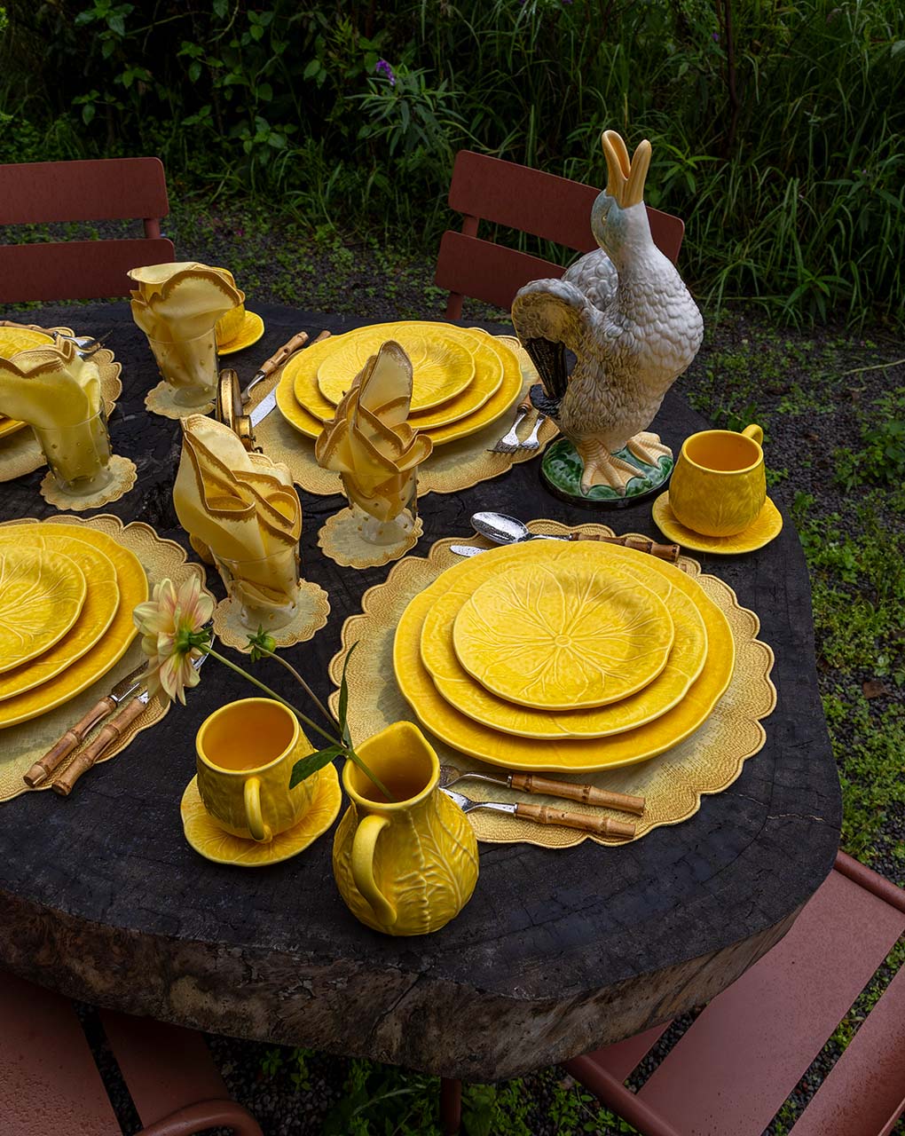 Plato Trinche de Repollo Amarillo Canario. Set de 4