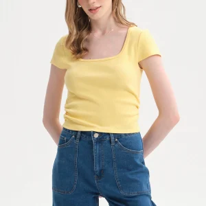 Polera Mujer Recogido Cropped Amarillo