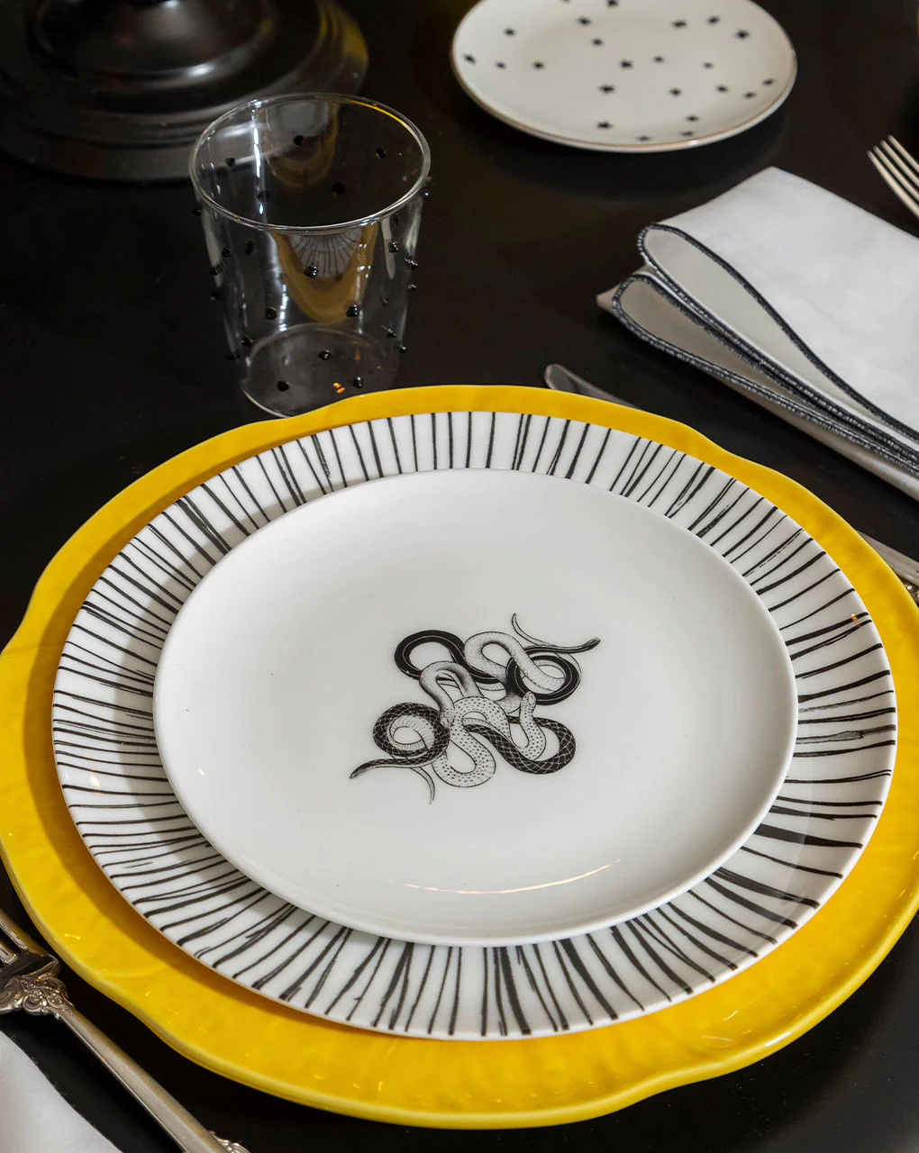 Platos Trinche de Rayas Negras, set de 4