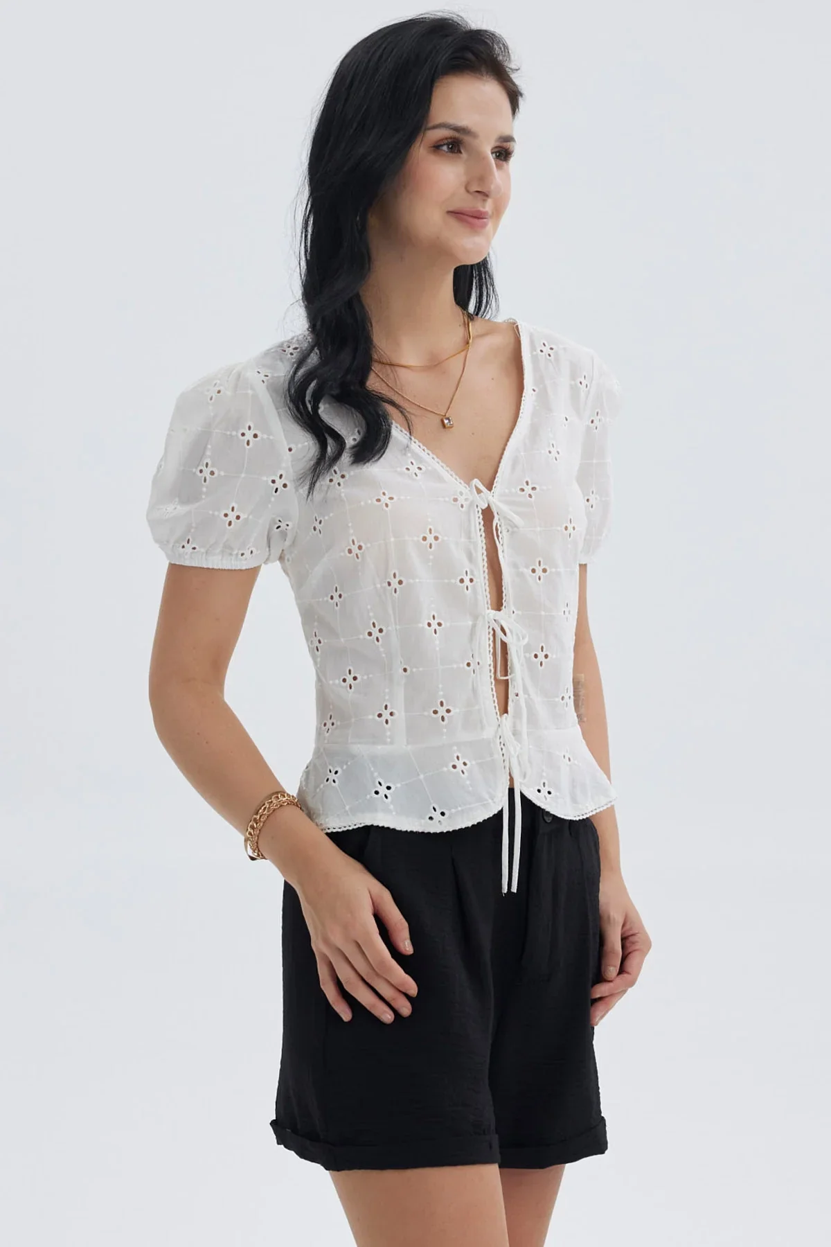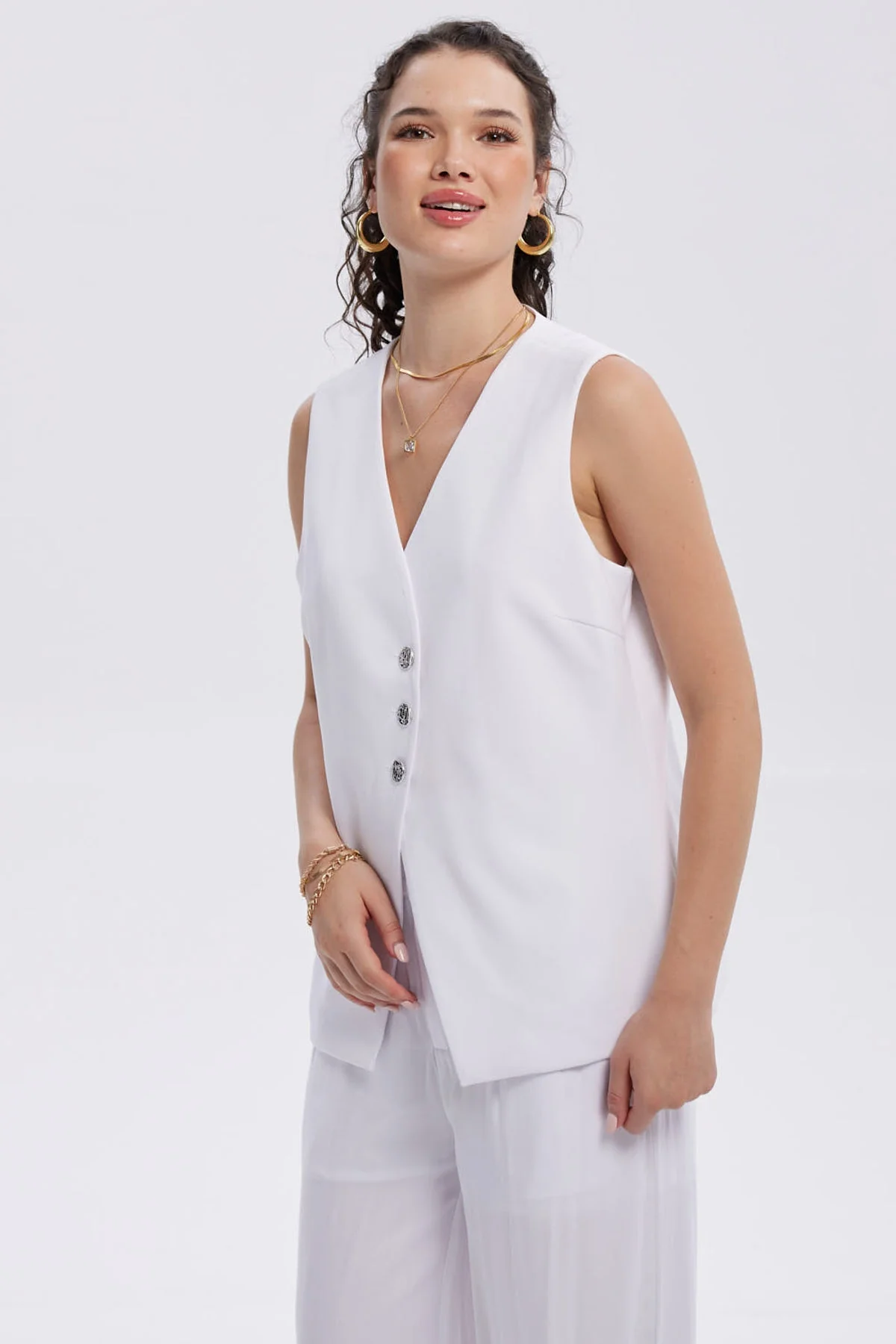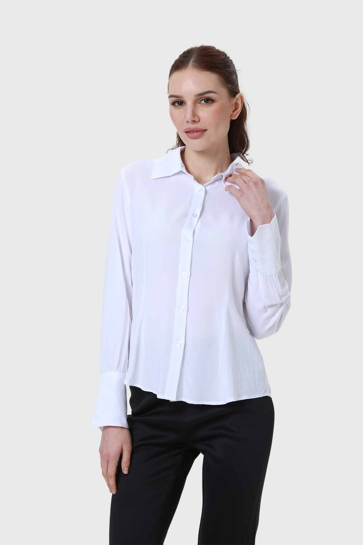 Blusa Mujer Abotonada Lisa Aplicación Blanco