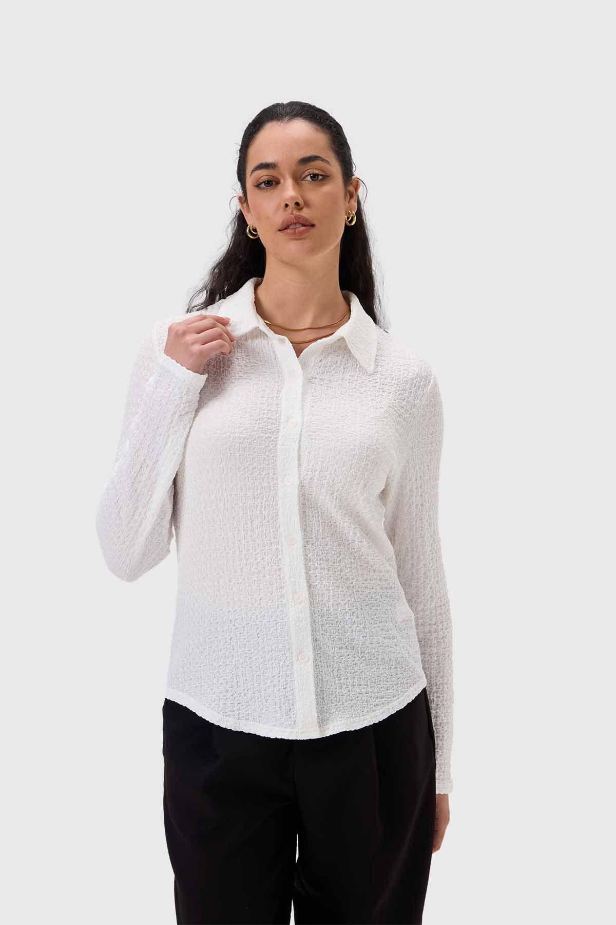 Blusa Mujer Abotonada Con Textura Crudo