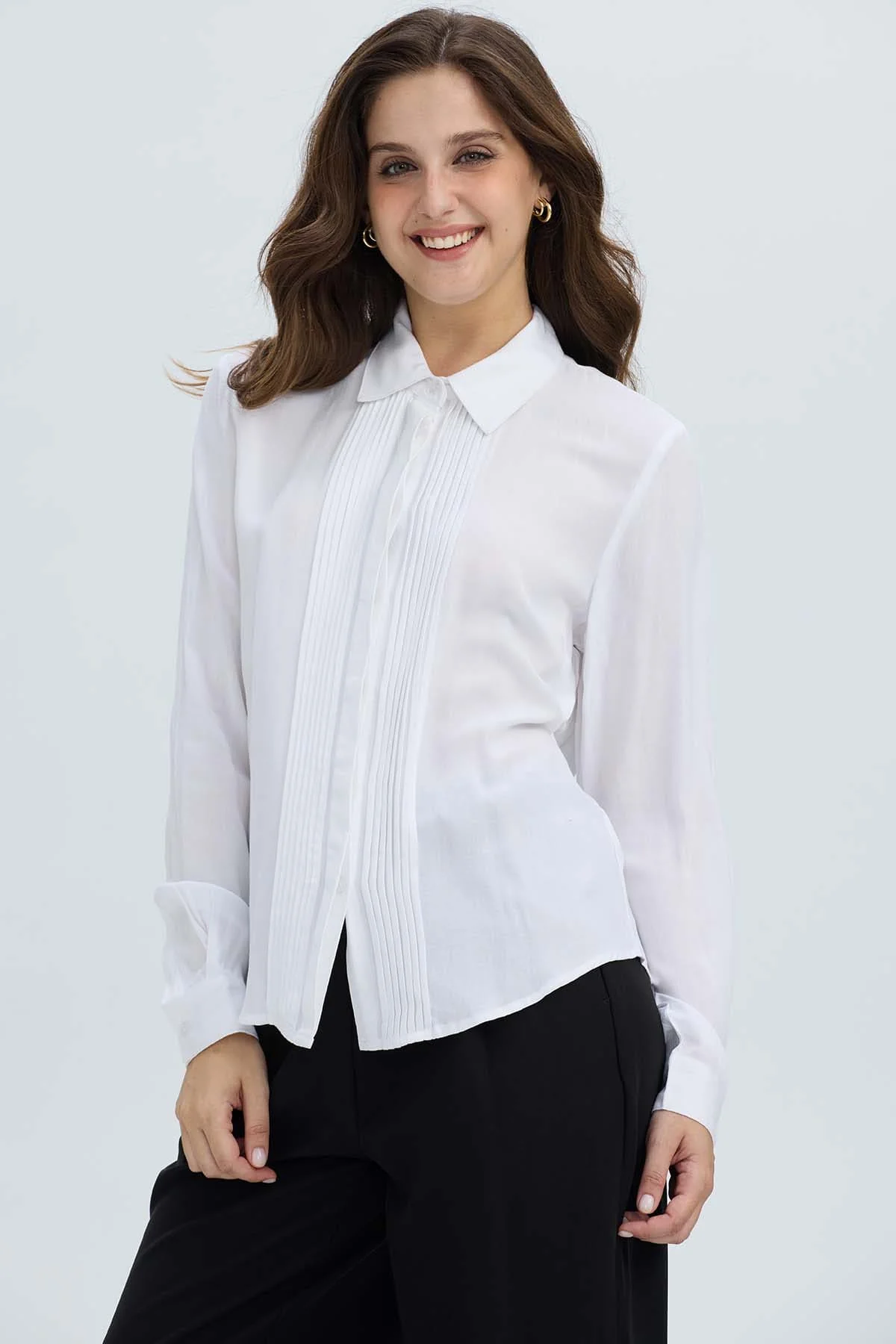 Blusa Mujer Abotonada Con Pinzas Blanco