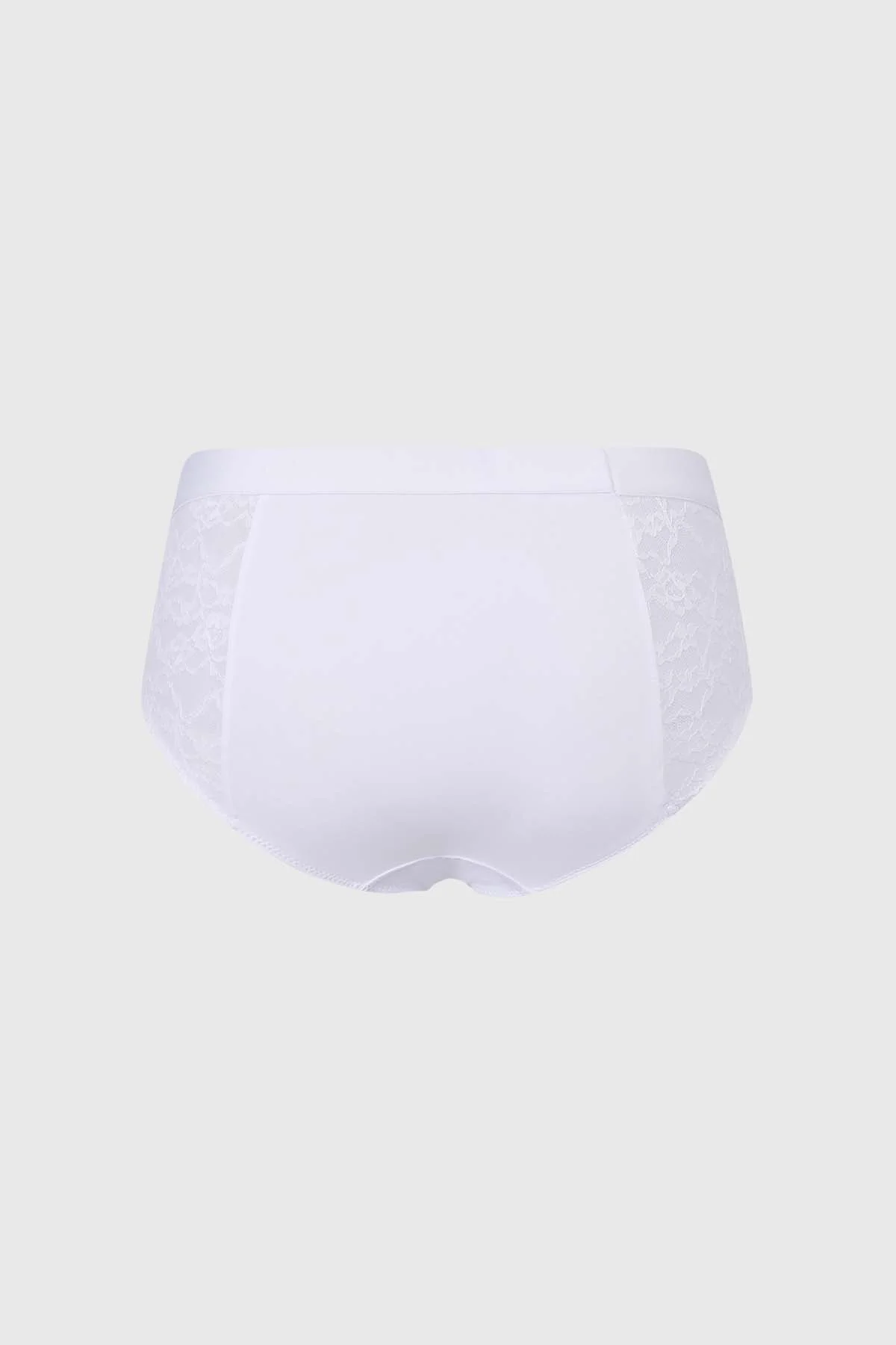 Calzón Mujer Tiro Alto Detalle Encaje Blanco