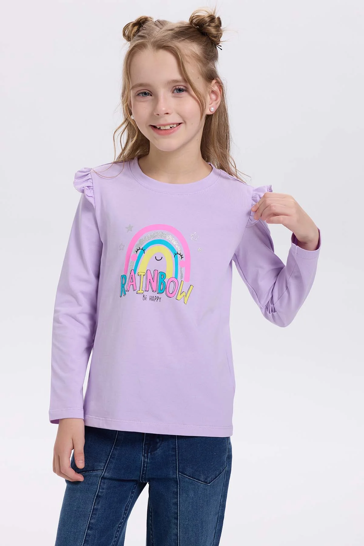 Polera Niña Con Glitter Lila
