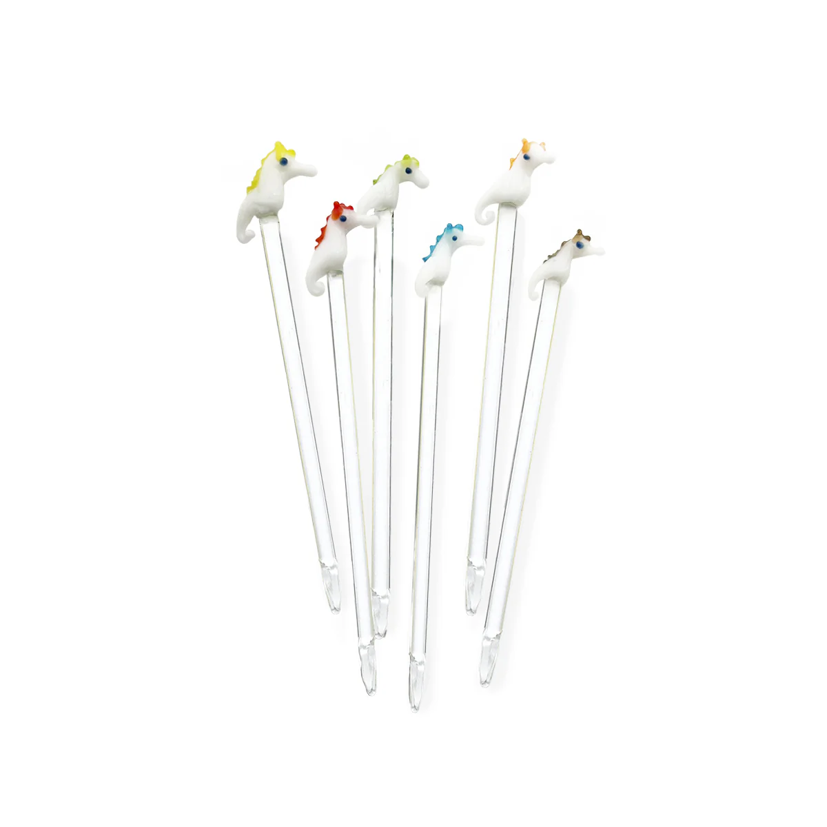 Pinchos Artesanales de Cristal en Forma de Caballito de Mar. Set de 6