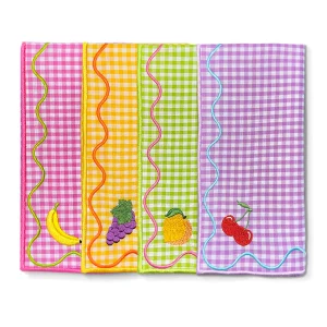 Servilletas Tutti Frutti en Mascota de Algodón de Colores con Bordado de Frutas. Set de 4