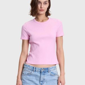 Polera Mujer Rib Terminación Rosado