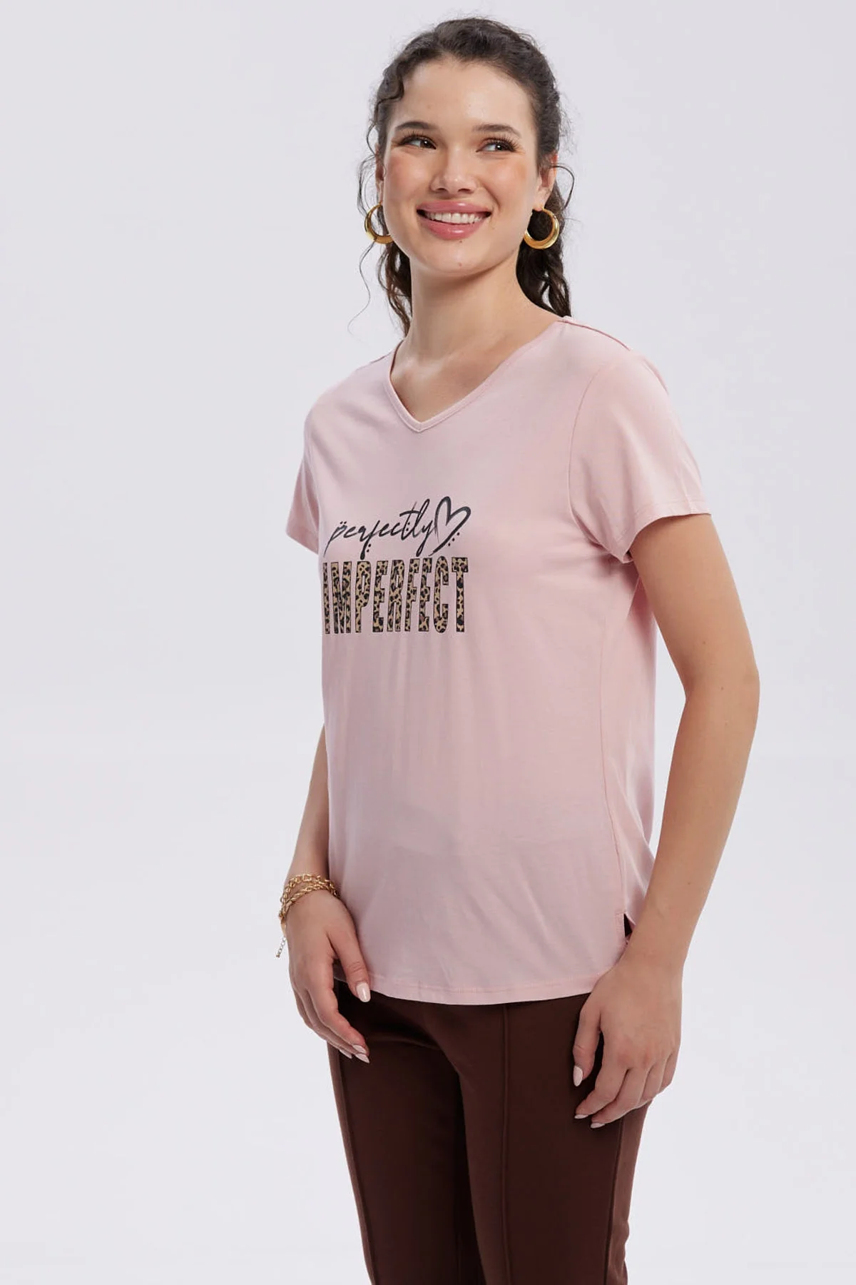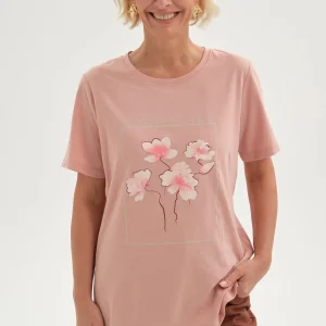 Polera Mujer Print Aplicación Folia Palo Rosa
