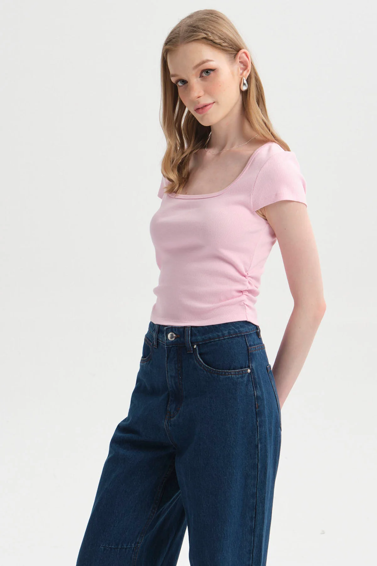 Polera Mujer Recogido Costado Palo Rosa