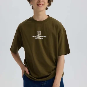 Polera Niño Oversize Print Verde Militar