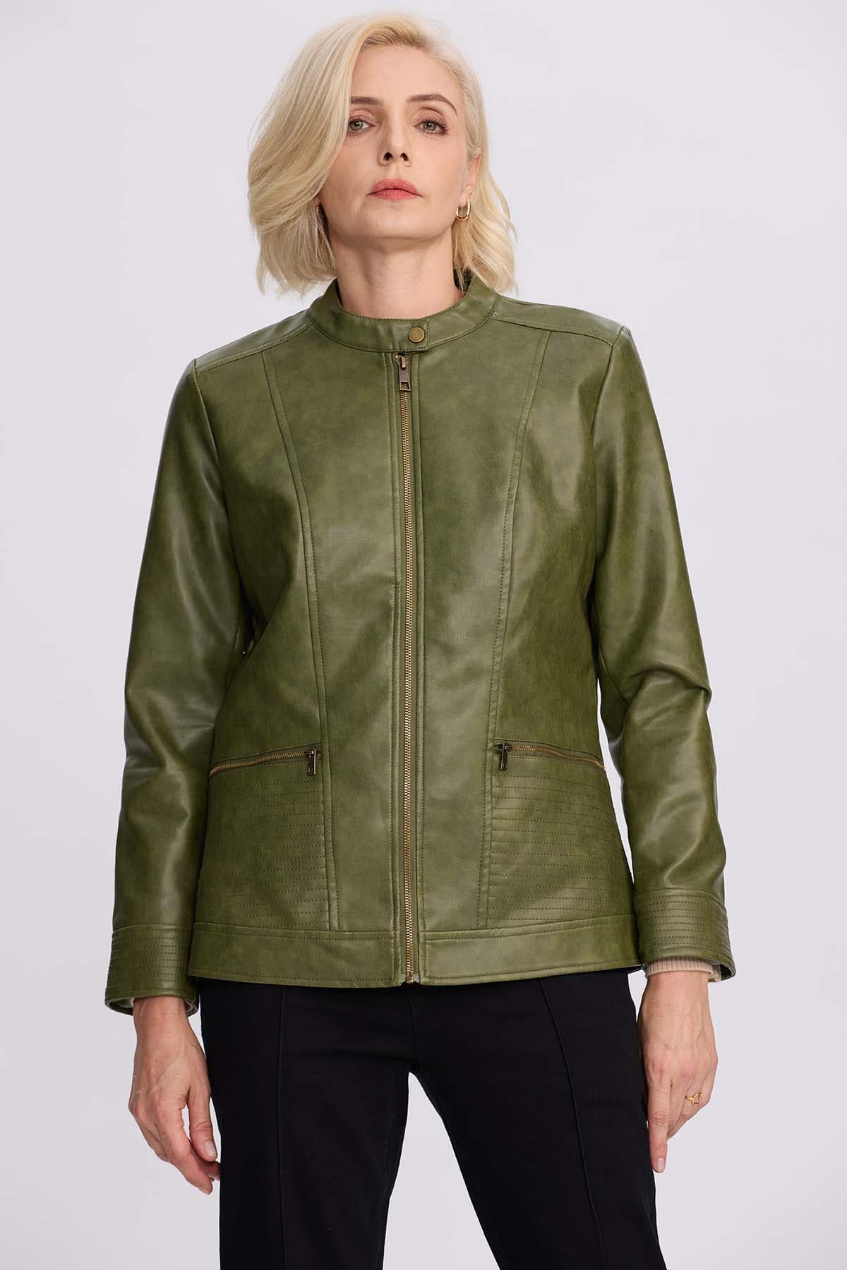 Chaqueta Mujer Efecto Cuero Verde Militar