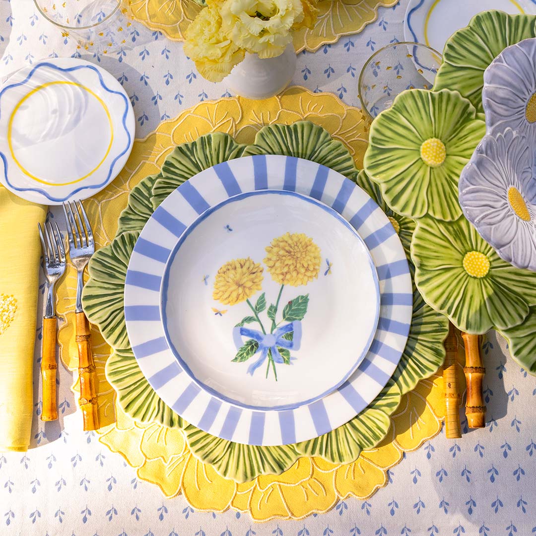 Individuales Bouquet en Algodón Amarillo con Bordado de Hortensia. Set de 4