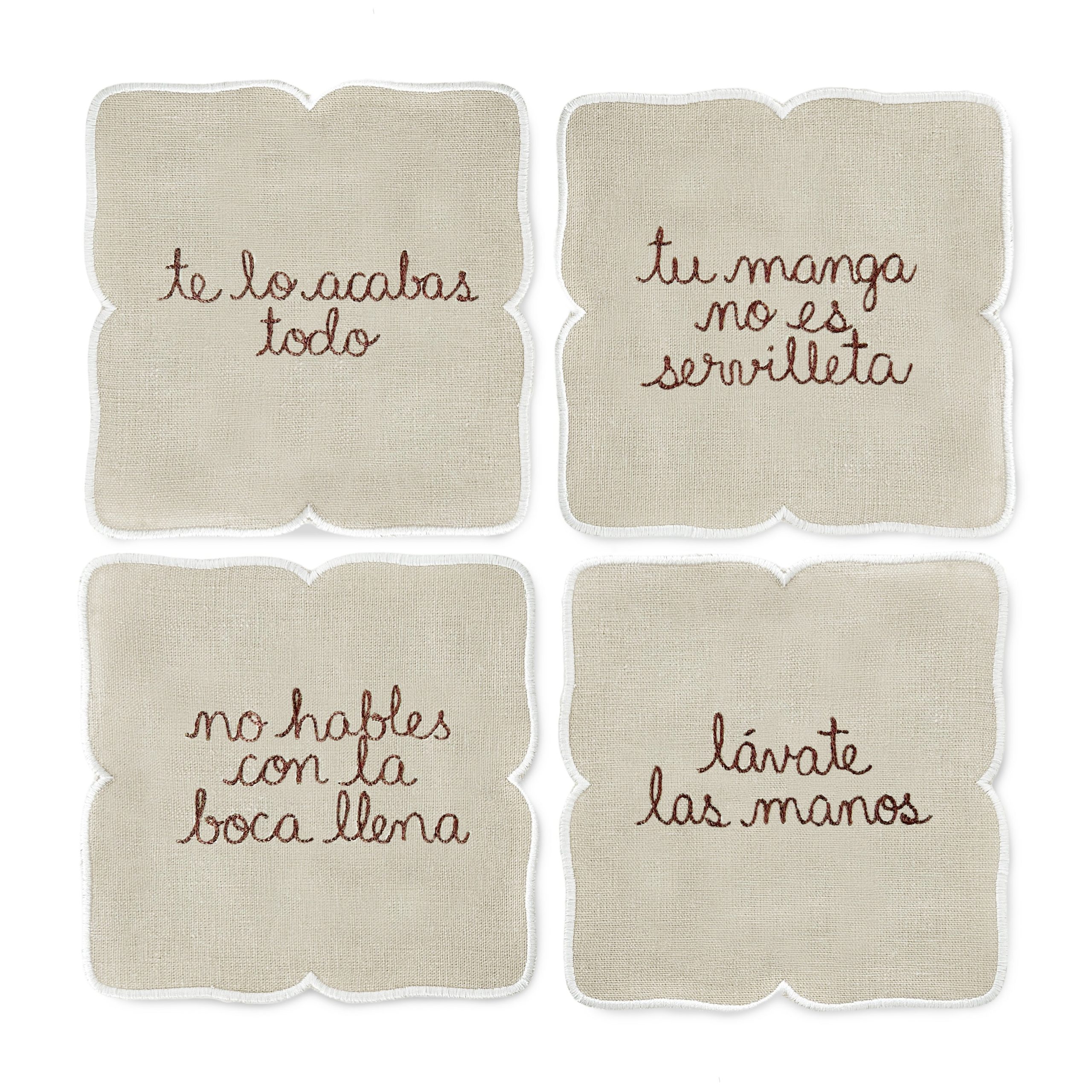 Juego de 4 Servilletas de coctel Bordadas con frases de Buenos Modales Set 2