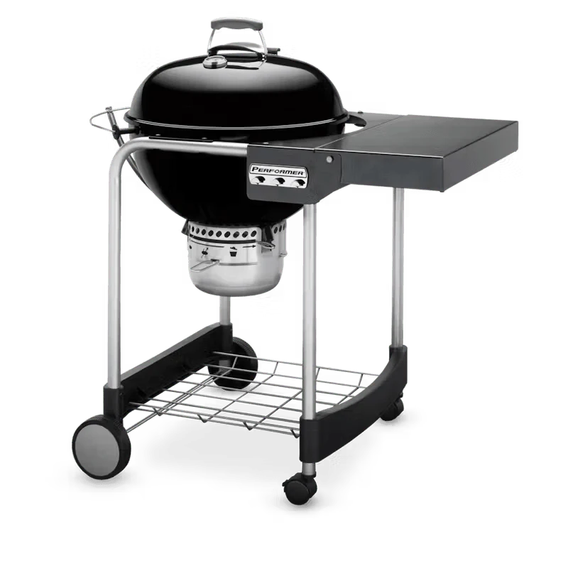 Causa sensación en tu jardÃn con el impresionante asador de carbón Original Kettle® edición Stealth® de 57 cm (22 in) totalmente negro, disponible exclusivamente en Lowe’s. Esta edición Stealth® del icónico asador Weber® Kettle tiene todas las caracterÃsticas que conoces y te encantan: tapa y cuerpo en elegante color negro mate con acabado porcelanizado aplicado a mano, resistente al óxido y a los arañazos. De arriba abajo, el termómetro integrado en la tapa, las manijas, el cenicero, las patas y las ruedas son de color negro. El termómetro de la tapa te permite leer fácilmente la temperatura interna de tu asador de un vistazo, y eliminar las cenizas es muy sencillo gracias al sistema de limpieza One-Touchâ„¢. La durable parrilla de cocción de acero chapado tiene suficiente espacio para cocinar un banquete, asà que reúne a tus amigos y familiares alrededor de tu asador Kettle para disfrutar de delicias cocinadas al fuego con estilo.