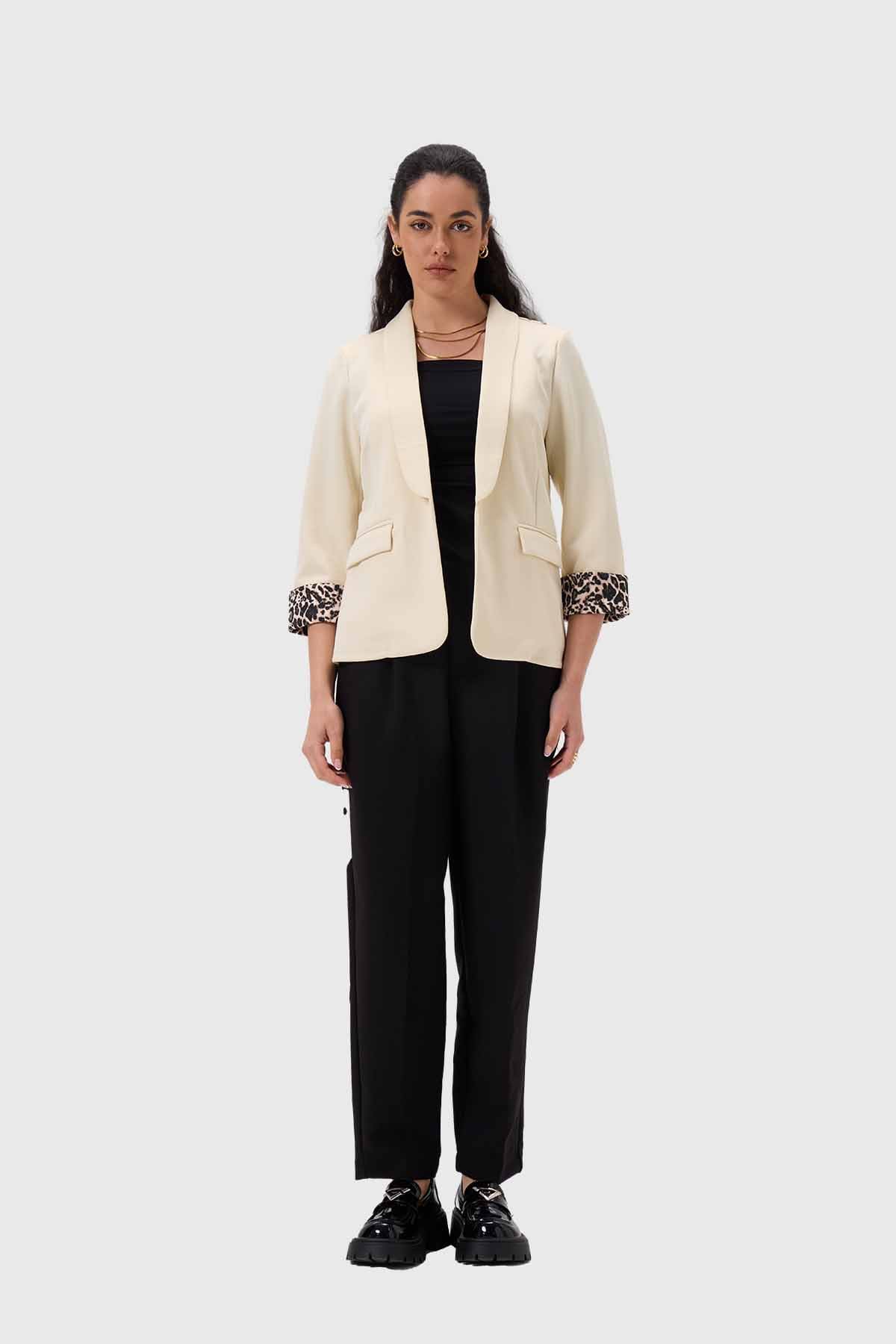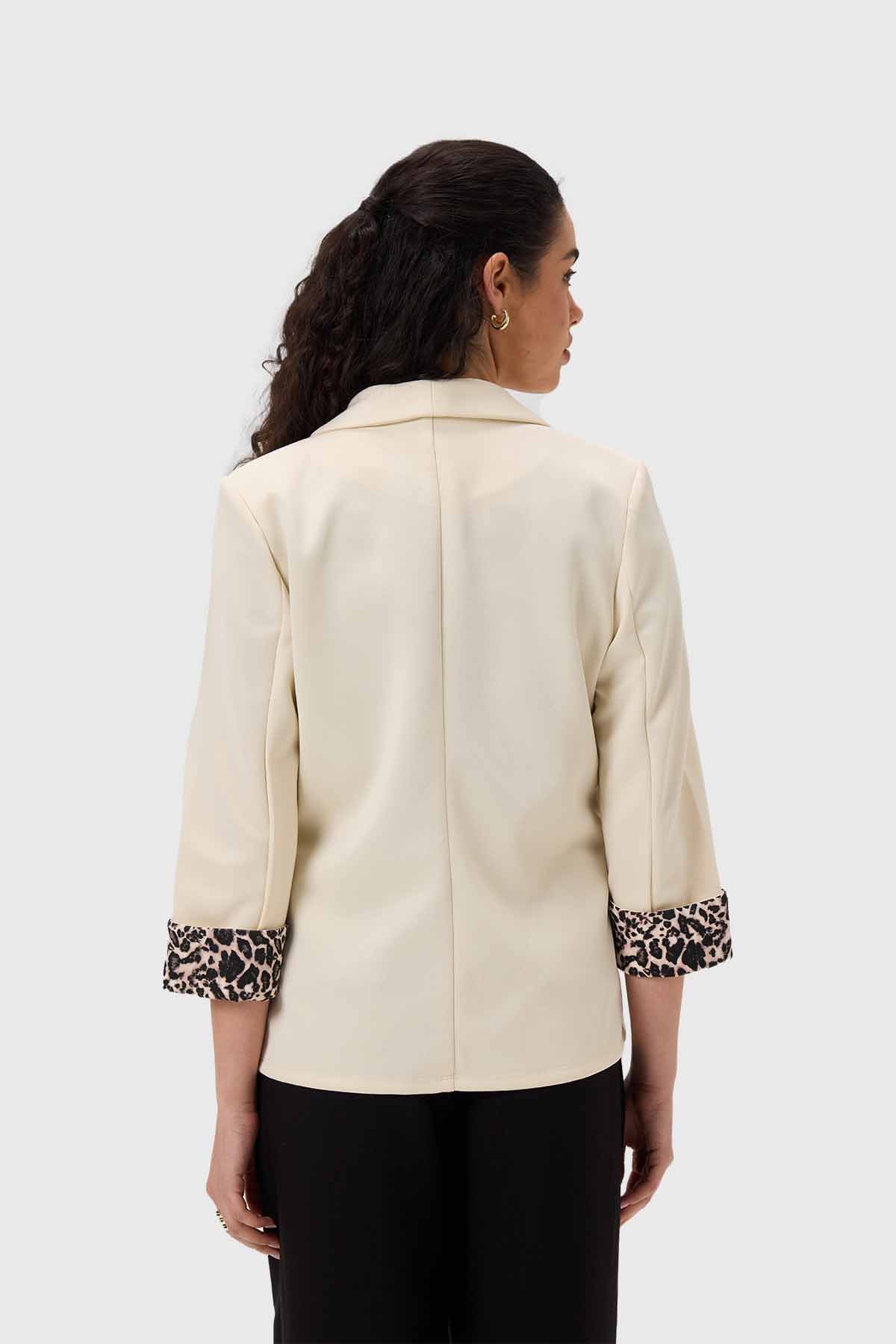 Descubre el blazer liso en un elegante tono beige, ideal para cualquier ocasión. Confeccionado en un material suave que brinda comodidad y abrigo ligero, este blazer destaca por sus puños con diseño animal, añadiendo un toque moderno y chic. Perfecto para combinar con tus looks diarios o para un evento especial, su corte clásico se adapta a tu figura, realzando tu estilo personal. Al usarlo, sentirás la suavidad del tejido y la confianza que te brinda. Renueva tu guardarropa y expresa tu identidad con esta prenda única que te hará destacar.