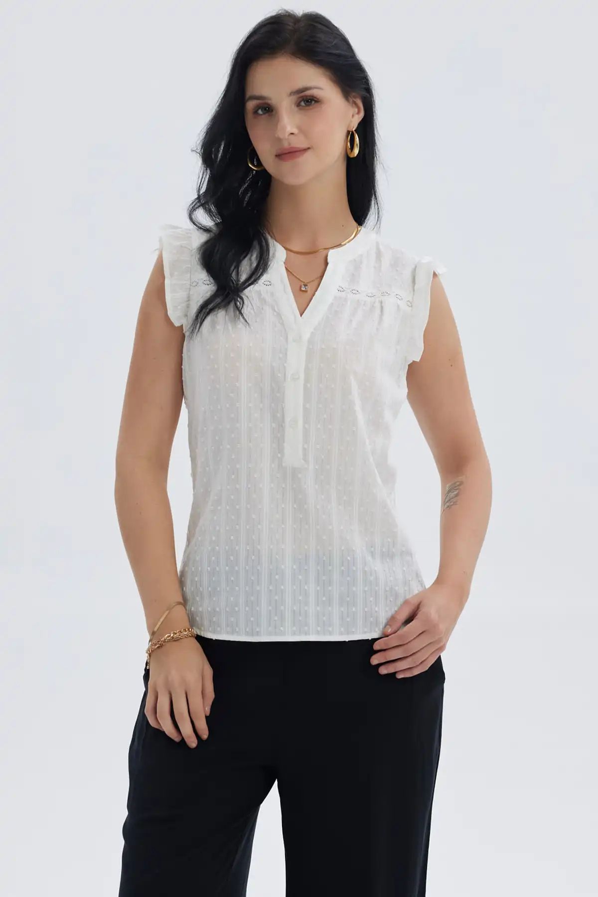 Sé el primero en valorar “Blusa Mujer Vuelos Pata Botón Crudo”