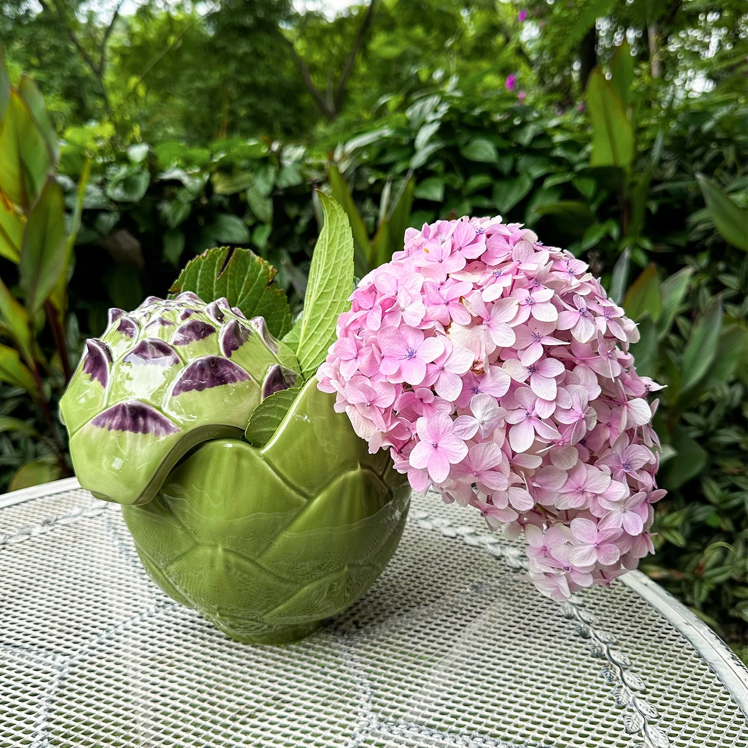 Caja Grande de cerámica en forma de alcachofa en color verde de Bordallo Pinheiro. Espectacular para decorar tu mesa, cocina o cualquier espacio de tu casa.