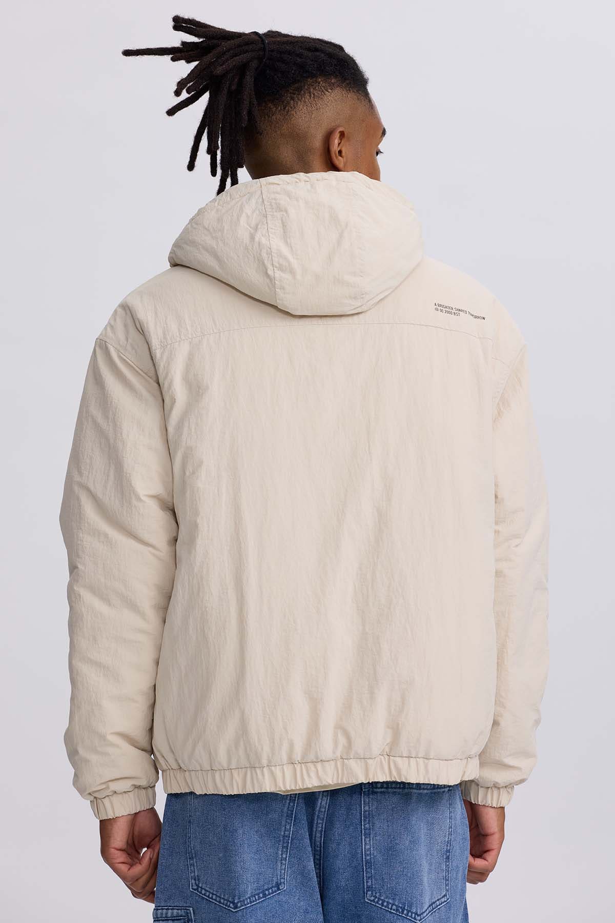 Esta chaqueta cortaviento beige claro para hombre ofrece una textura ligera y resistente gracias a su composición 100% nylon Taslan. El diseño liso y su calce juvenil son ideales para la temporada primavera-verano, brindando frescura y estilo. Úsala con jeans o pantalones para un look casual diario.