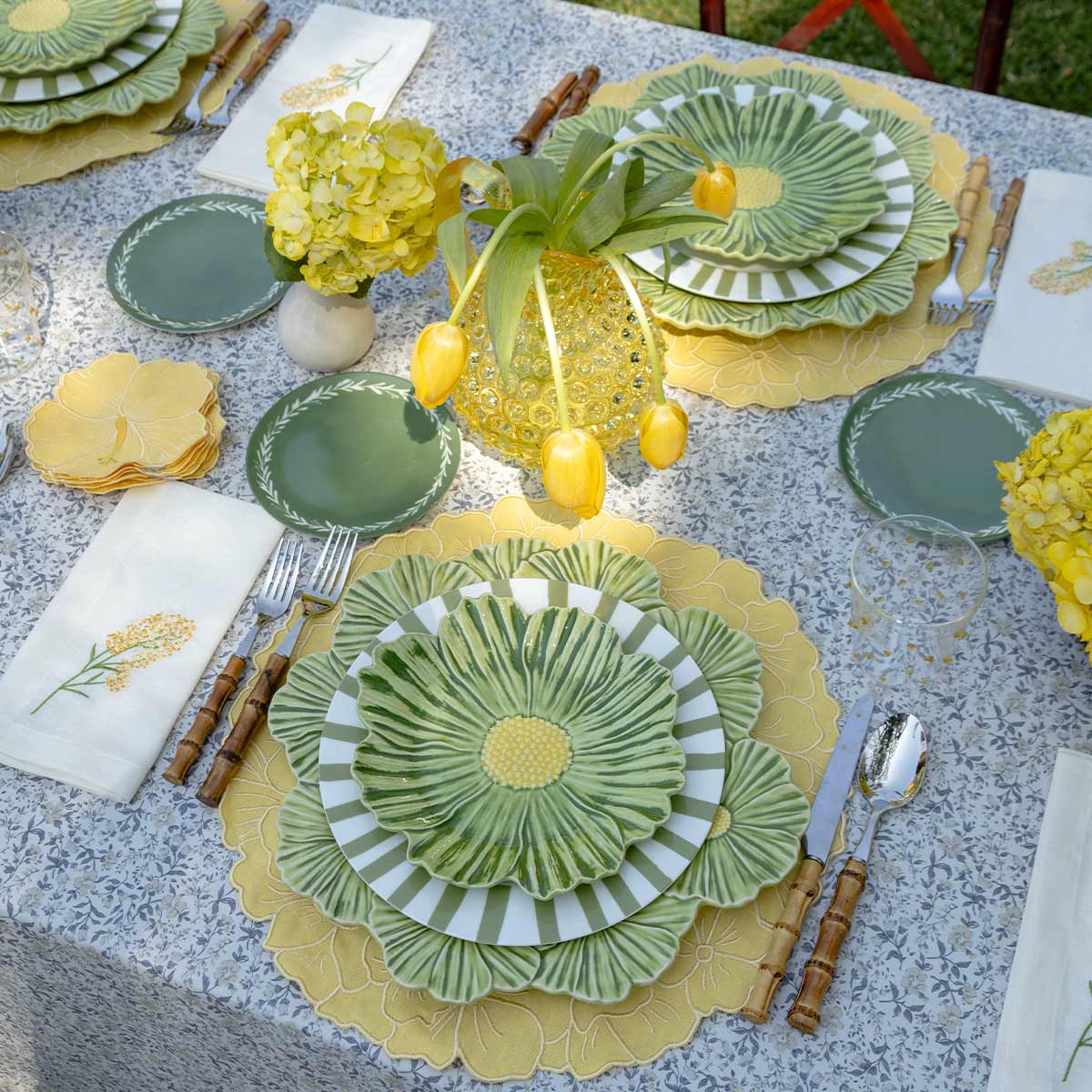 Servilletas cocteleras en forma de flor Hibiscus en color amarillo. Ideal para servir tus drinks de primavera.