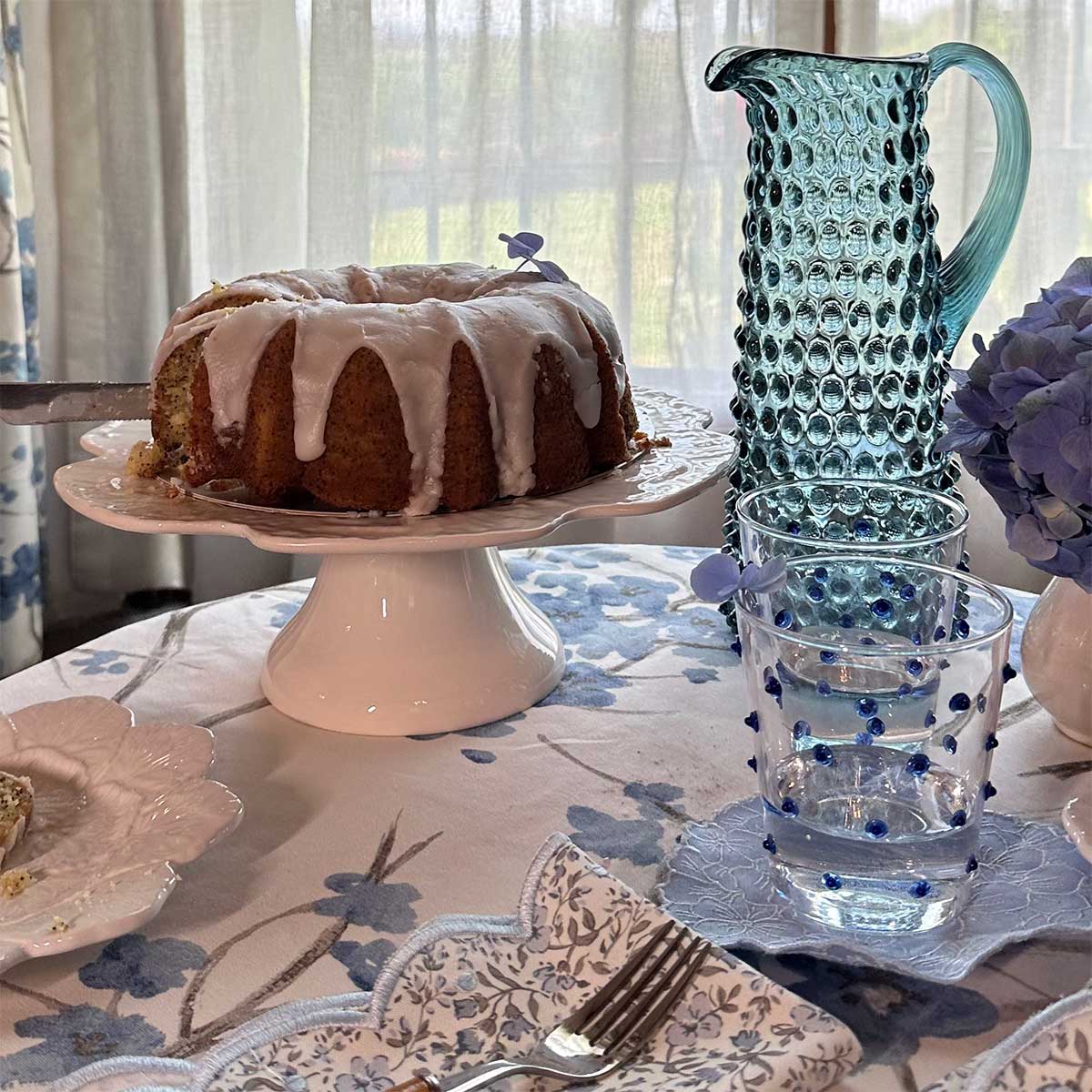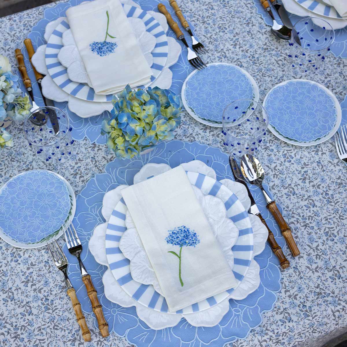 Servilletas cocteleras en forma de flor Hortensia en color azul. Ideal para servir drinks en primavera.
