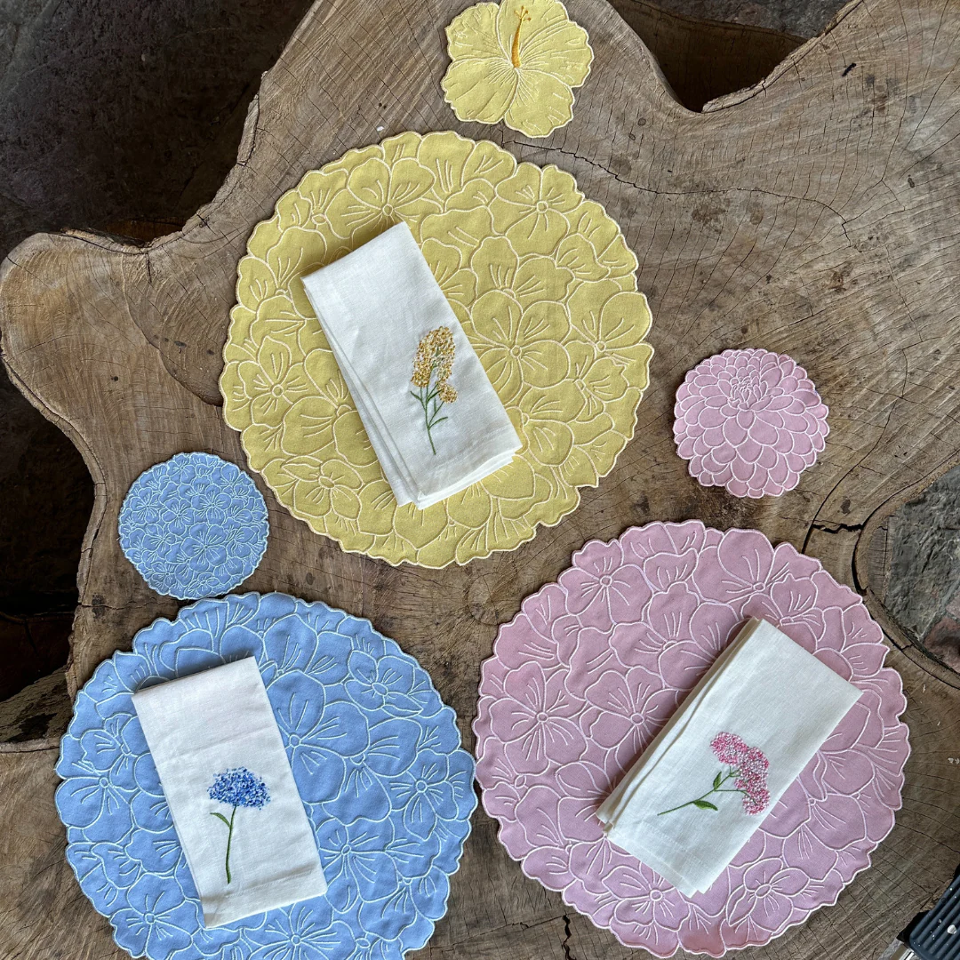 ¡El bestseller del momento! Los individuales Bouquet en forma de hortensia son cuidadosamente bordados para tener un bouquet de flores en la mesa. Perfectos para la primavera y verano, dÃas de comida en jardÃn o terraza, pero también para interiores con un look de flores. Le da frescura y belleza a cualquier mesa, ideal para terraza o jardÃn.