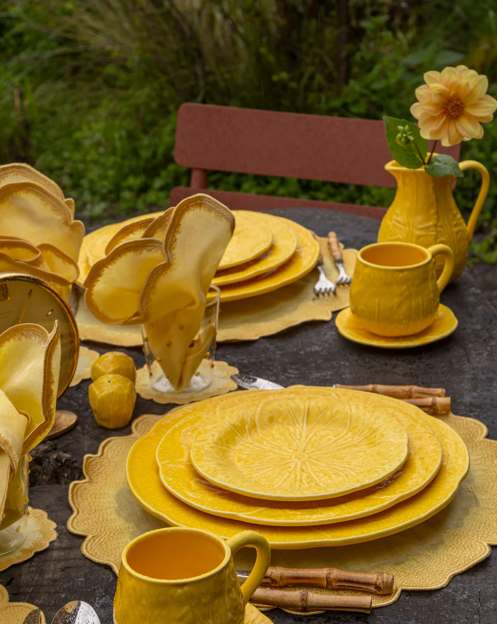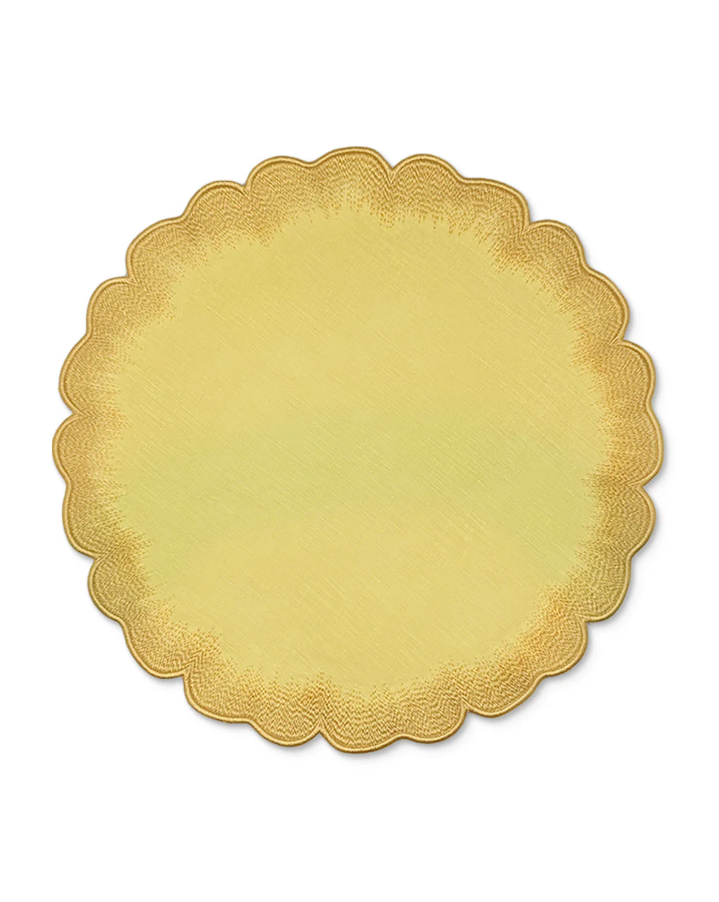 Un individual sofisticado, atemporal y con un craftsmanship excepcional. Cada uno es bordado en lino Amarillo con hilo dorado, recortado a mano cuidadosamente. Lo más chic para poner en tu mesa.