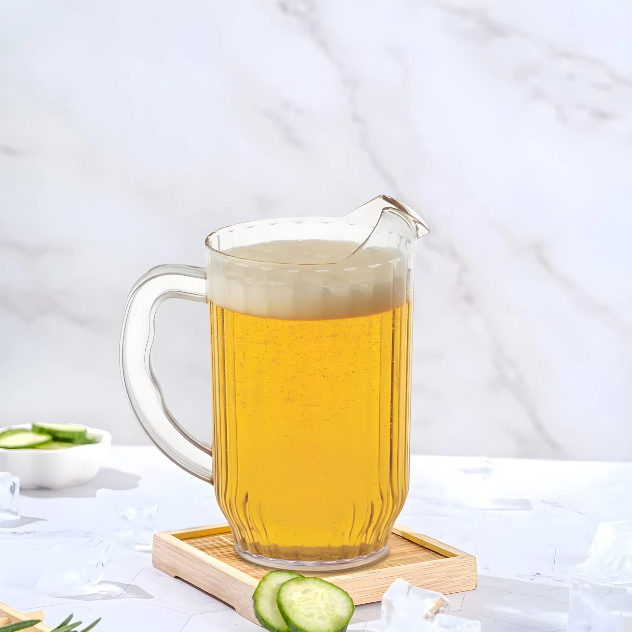 Su diseño transparente permite exhibir tus bebidas de manera atractiva, desde agua y jugos hasta limonadas y cocteles. Su elegante estética complementa cualquier decoración o estilo de mesa. -