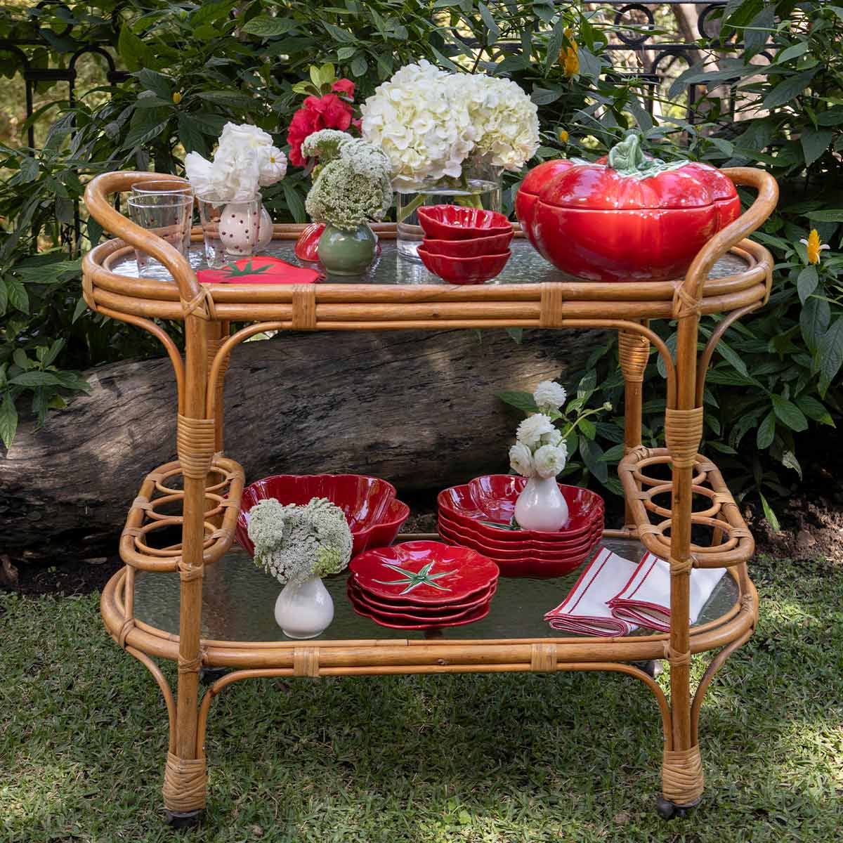 Set de 4 servilletas cocteleras en forma de tomate rojo. Ideal para servir drinks o botana.