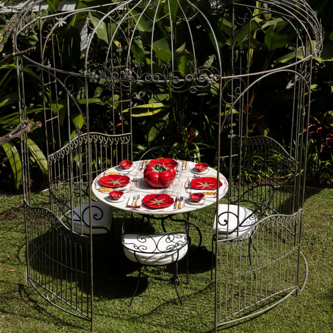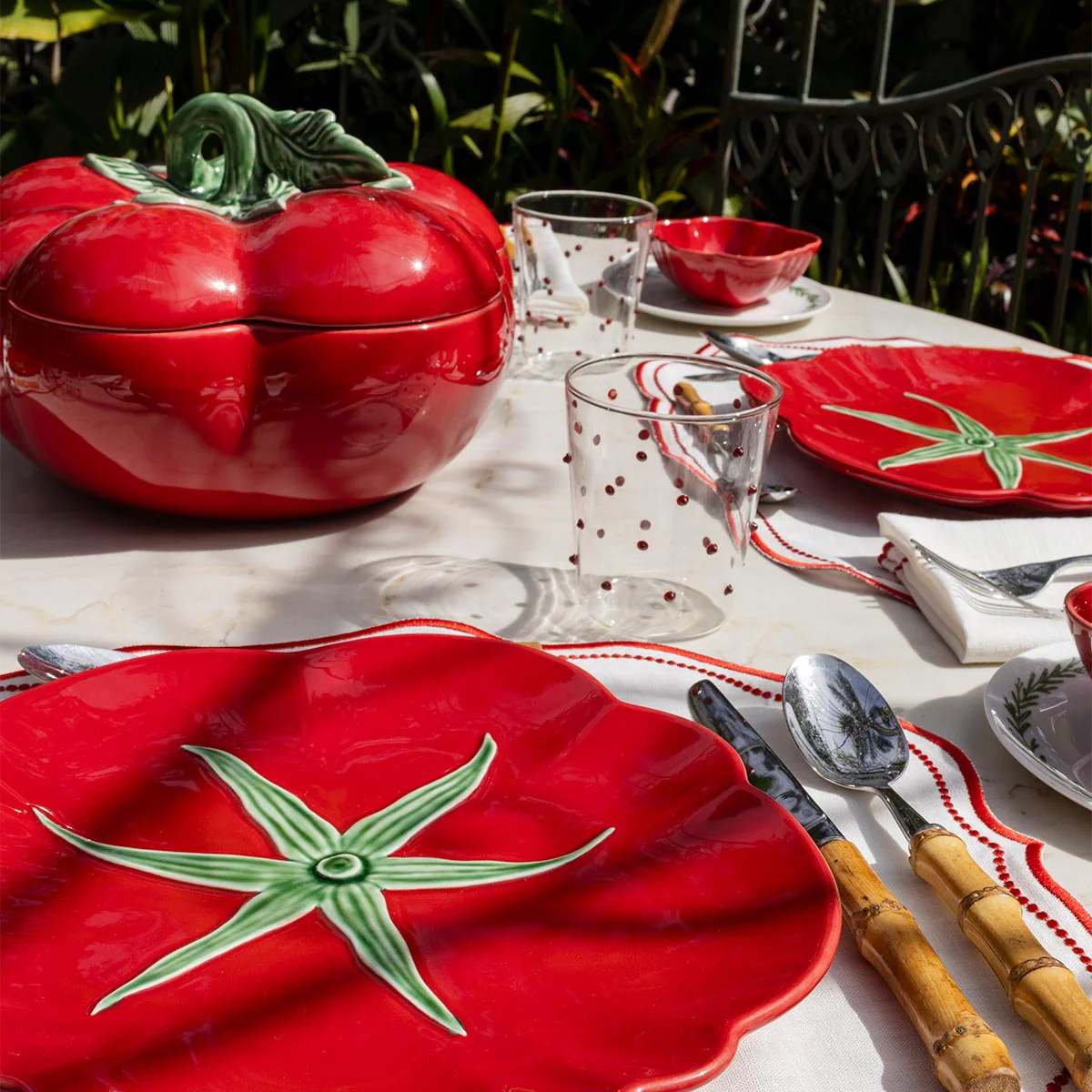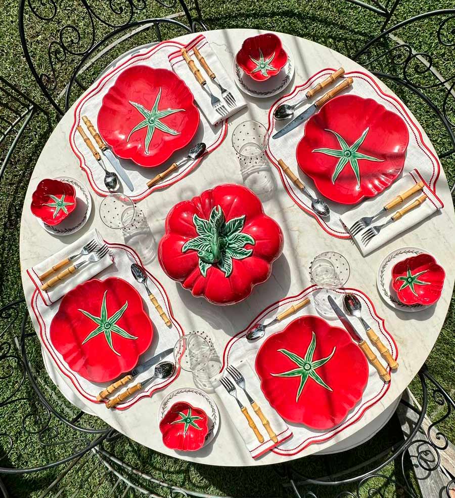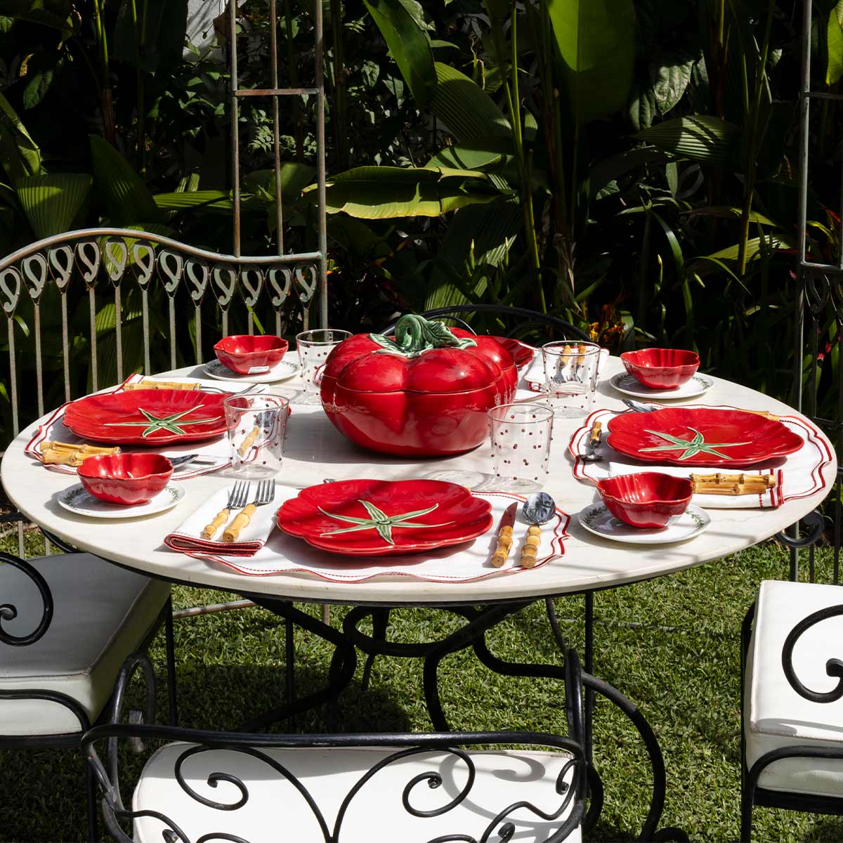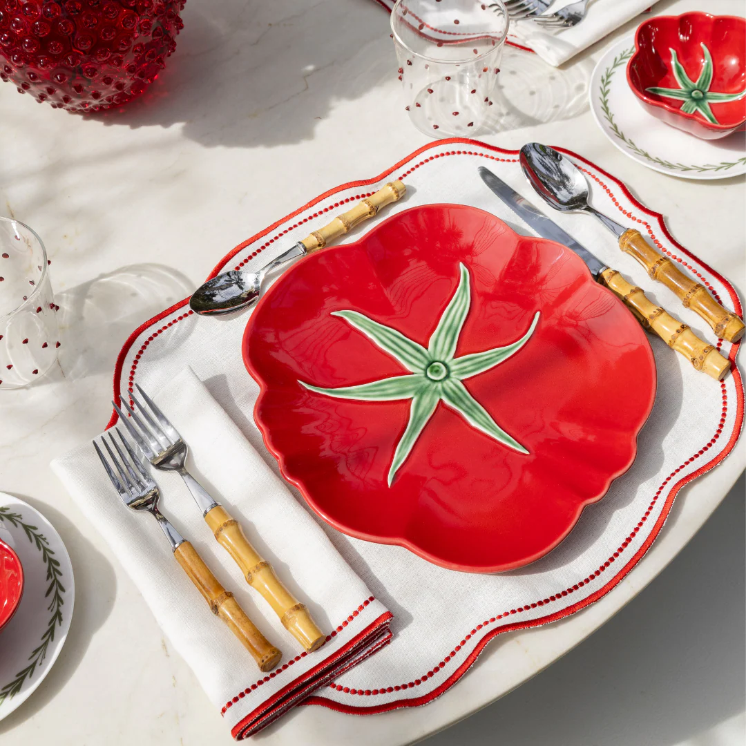Hermoso set de 4 individuales SofÃa en lino Lerida blanco con orilla bordada en rojo.