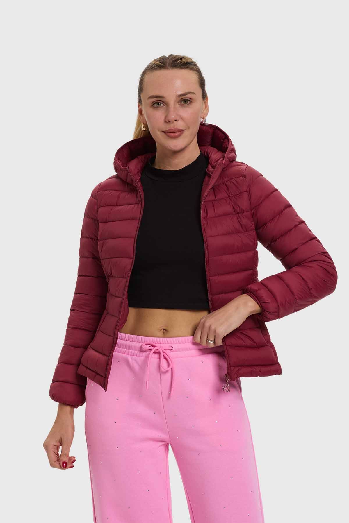 Descubre la parka corta Plummy en un atractivo color burdeos, ideal para esos dÃas frescos. Su material acolchado brinda una suavidad y comodidad excepcionales, mientras que su diseño moderno y funcional te mantendrá abrigada sin sacrificar el estilo. Con un corte que realza la figura y un capucho práctico, es perfecta para combinar con tus looks diarios. Siente la ligereza y el abrigo que esta prenda ofrece, convirtiéndola en un must-have de tu guardarropa. Atrévete a lucir tu mejor versión con esta parka que resalta tu personalidad y estilo único.