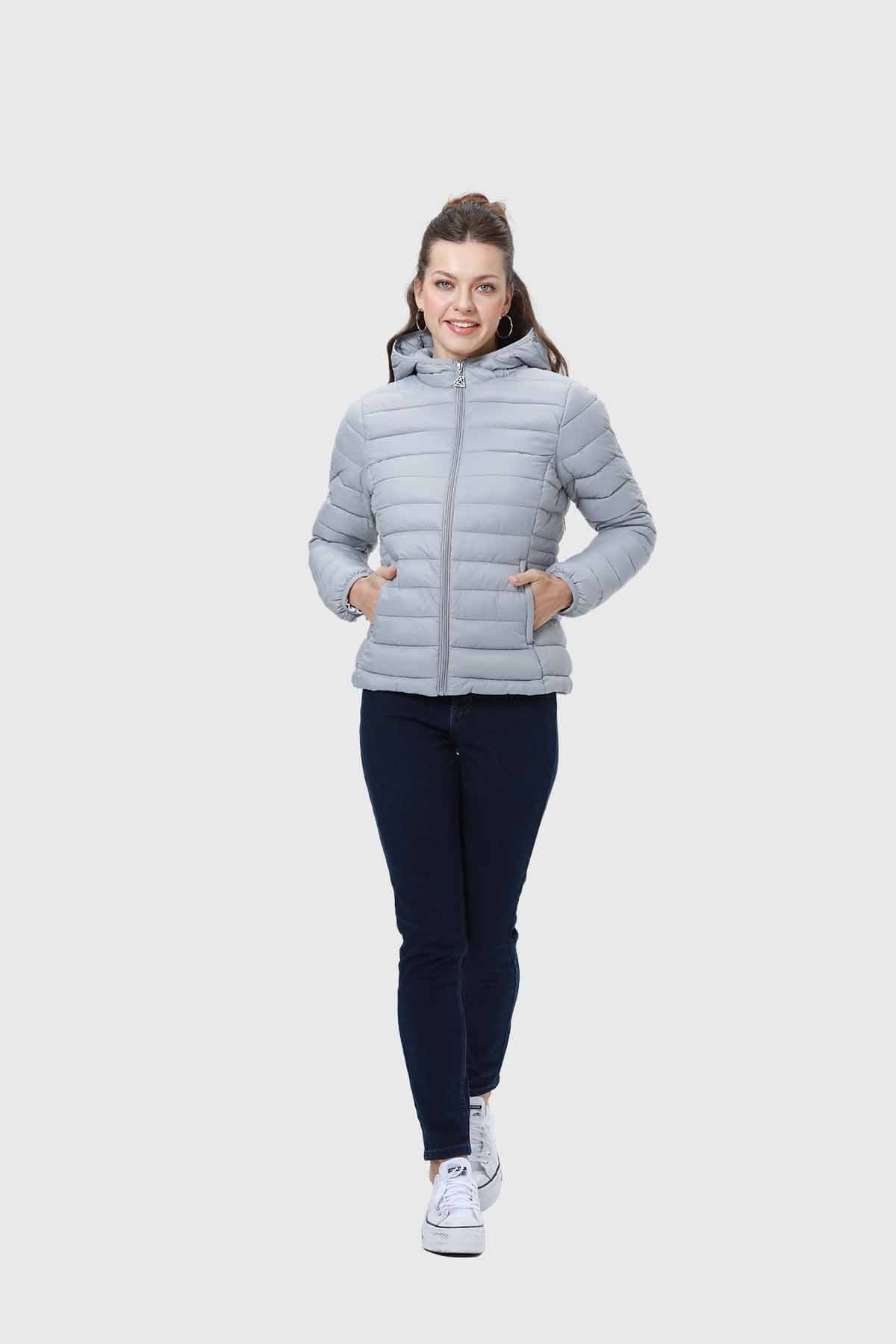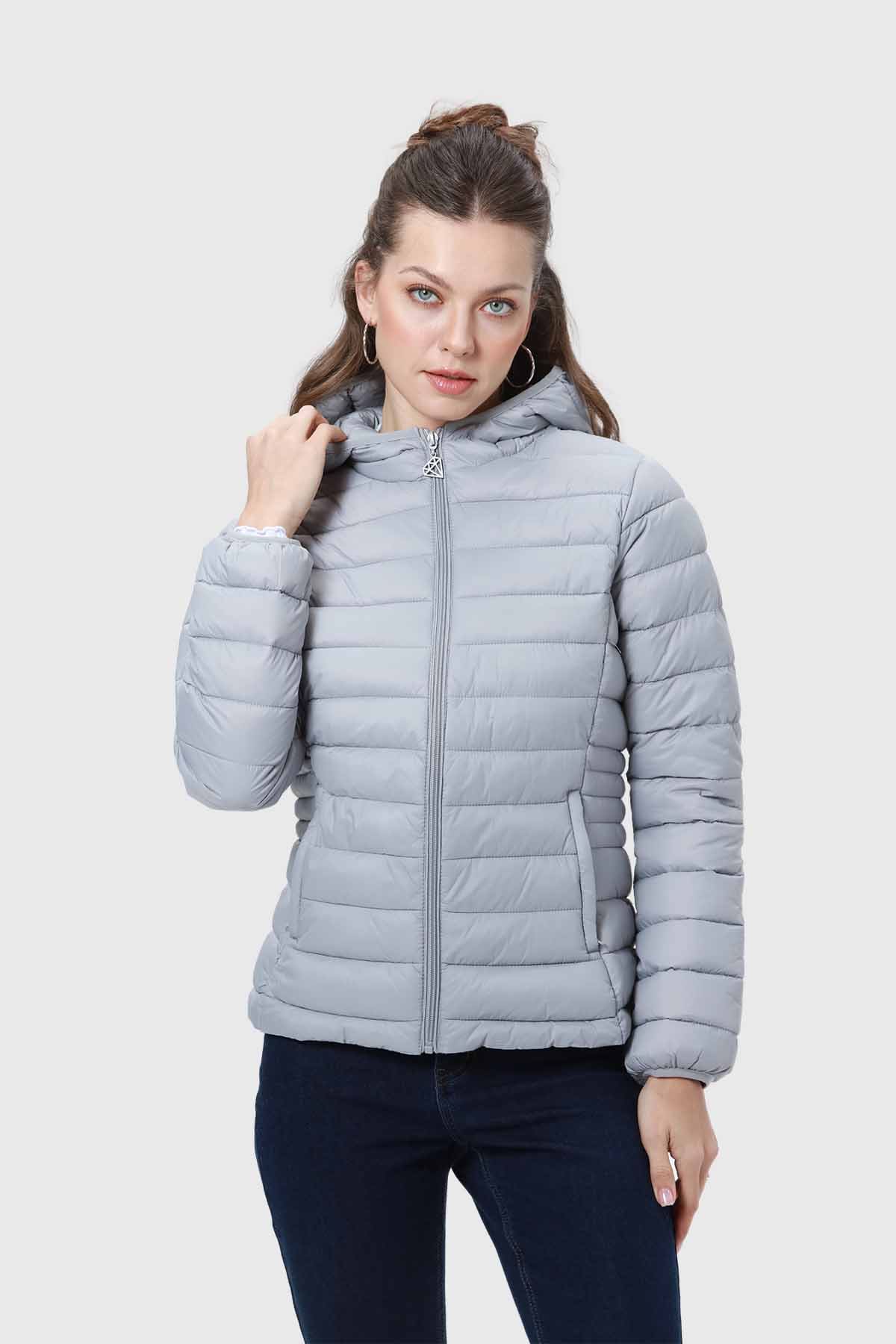 Descubre la parka corta Plummy gris, ideal para las mujeres que buscan estilo y comodidad. Confeccionada en un material acolchado que brinda suavidad y abrigo ligero, esta prenda es perfecta para los dÃas frescos. Su diseño moderno y minimalista se adapta a cualquier look, mientras que su color gris la convierte en un básico versátil. Además, cuenta con un cierre frontal y capucha, asegurando funcionalidad y estilo. Al usarla, sentirás la calidez y confort que necesitas para lucir espectacular. Renueva tu guardarropa y destaca tu personalidad con esta prenda única.