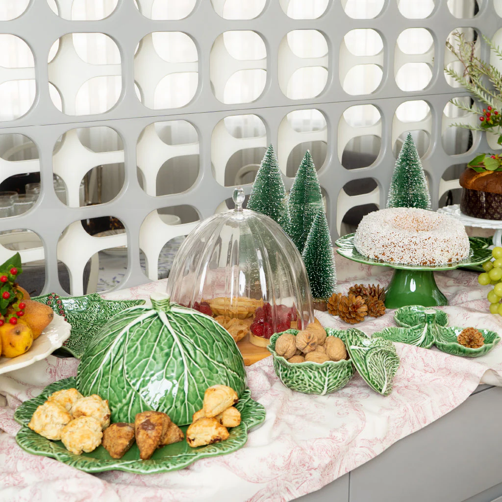 El famoso diseño de Repollo de Bordallo Pinheiro en un platón pastelero para poner postres, decoraciones y fantasÃa a cualquier mesa.
