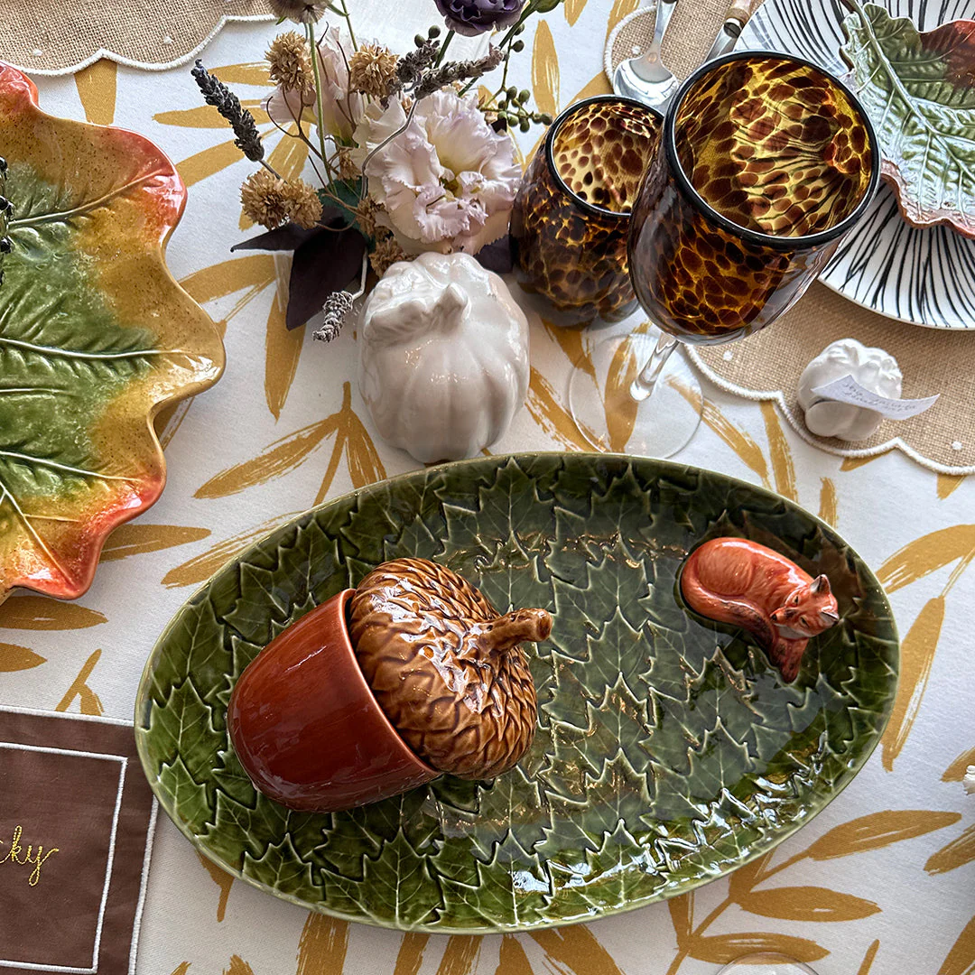 Impresionante plato de presentación en forma de una hoja en tonos otoñales. El otoño llega a tu mesa con lla nueva colección Gudrun diseñada por Claudia Schiffer para Bordallo Pinheiro.