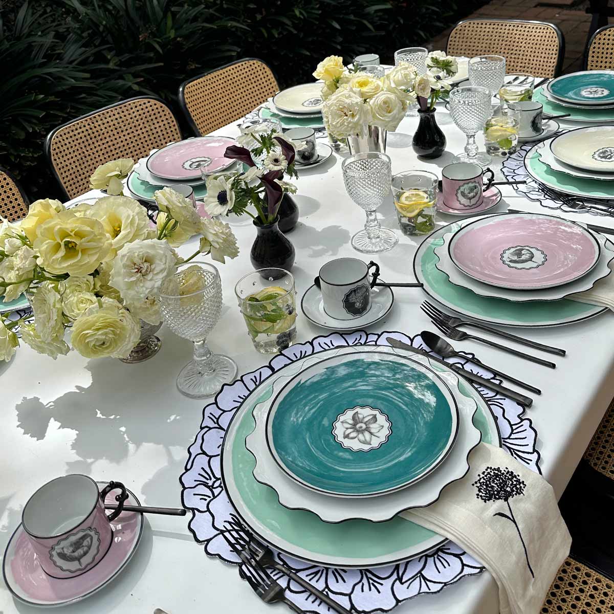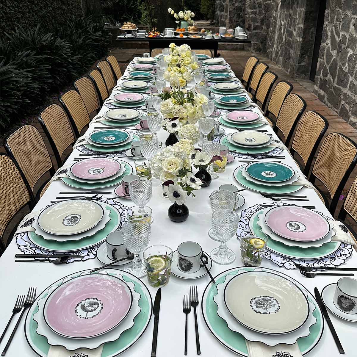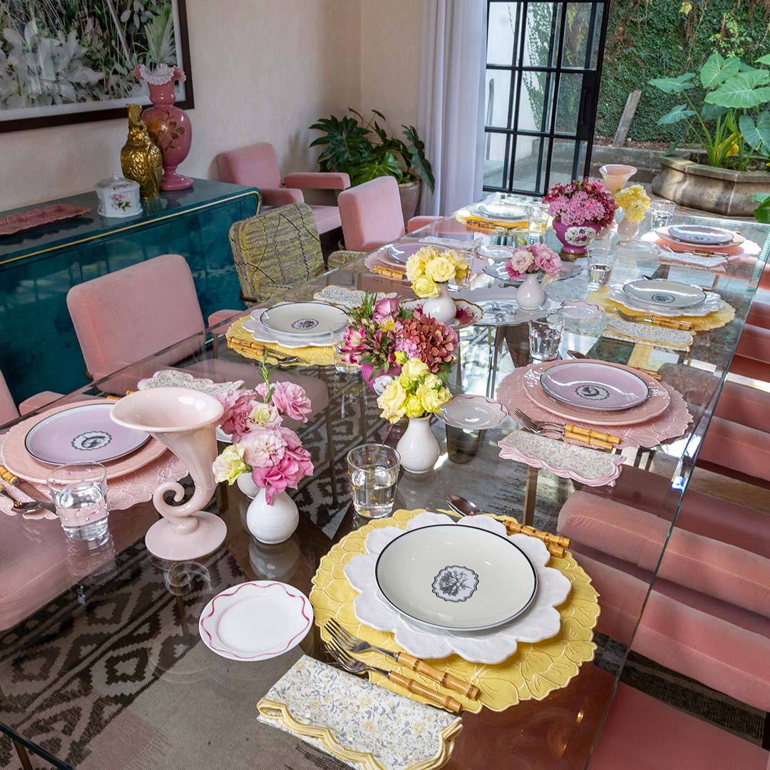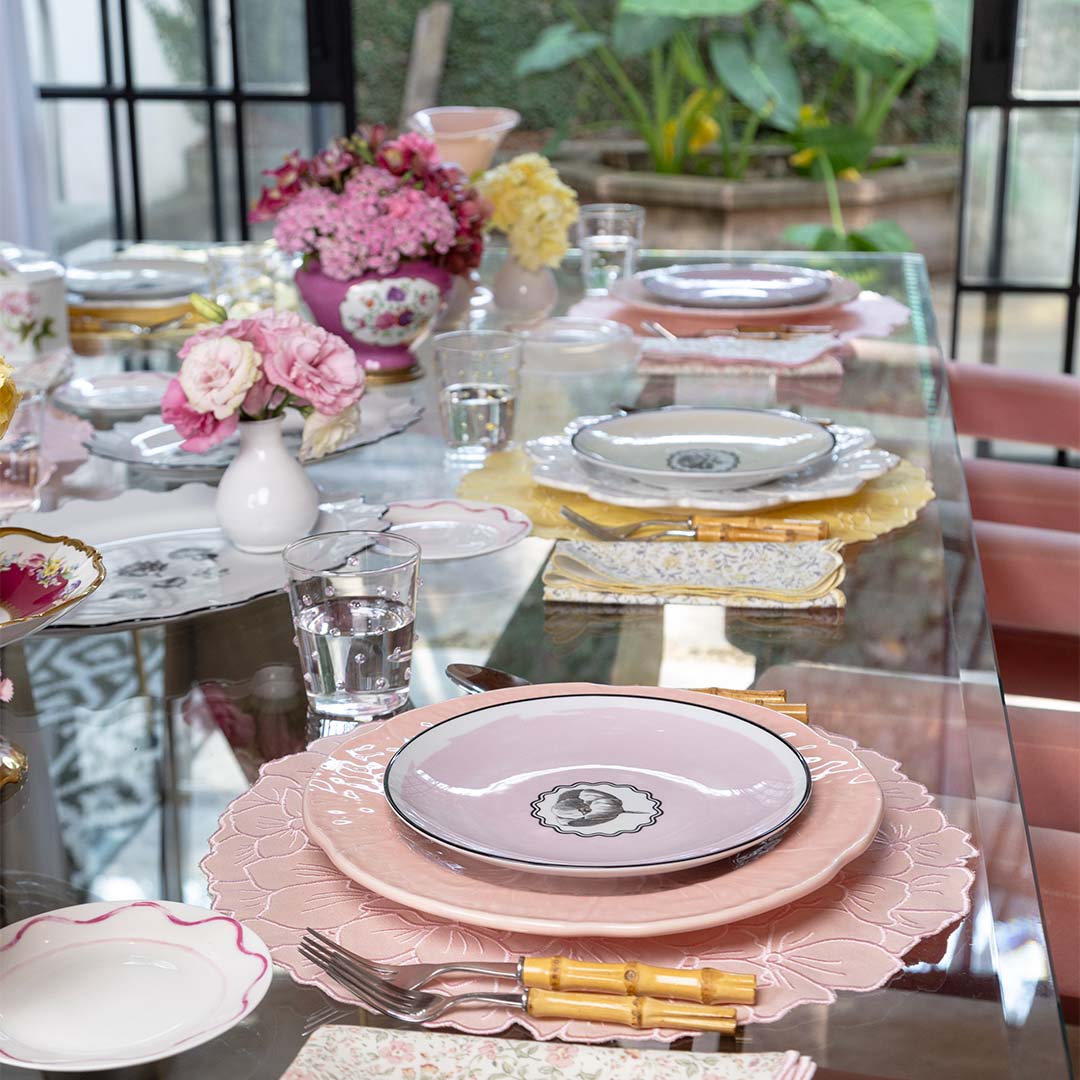 Plato para ensalada de porcelana en color amarillo claro de Vista Alegre en colaboración con Christian Lacroix Maison. Set con 4 piezas.