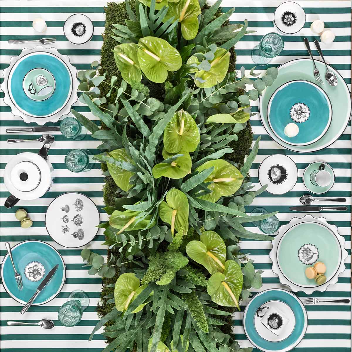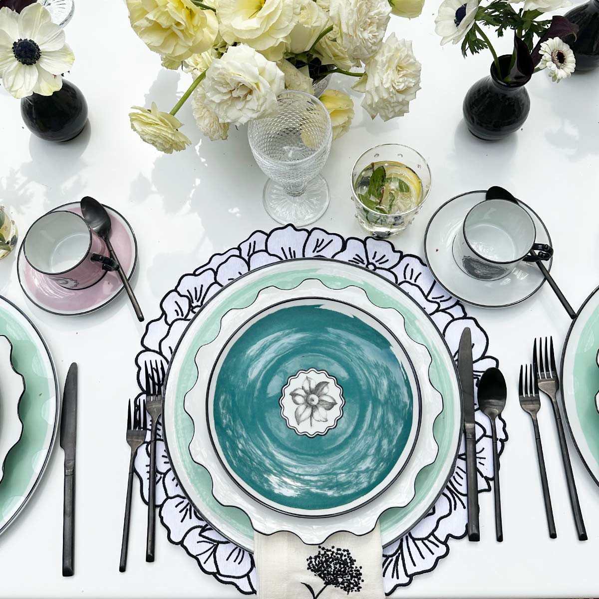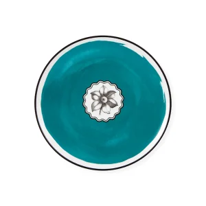 Plato para fruta de porcelana en color blanco con flores negras de Vista Alegre en colaboración con Christian Lacroix Maison. Set con 4 piezas.