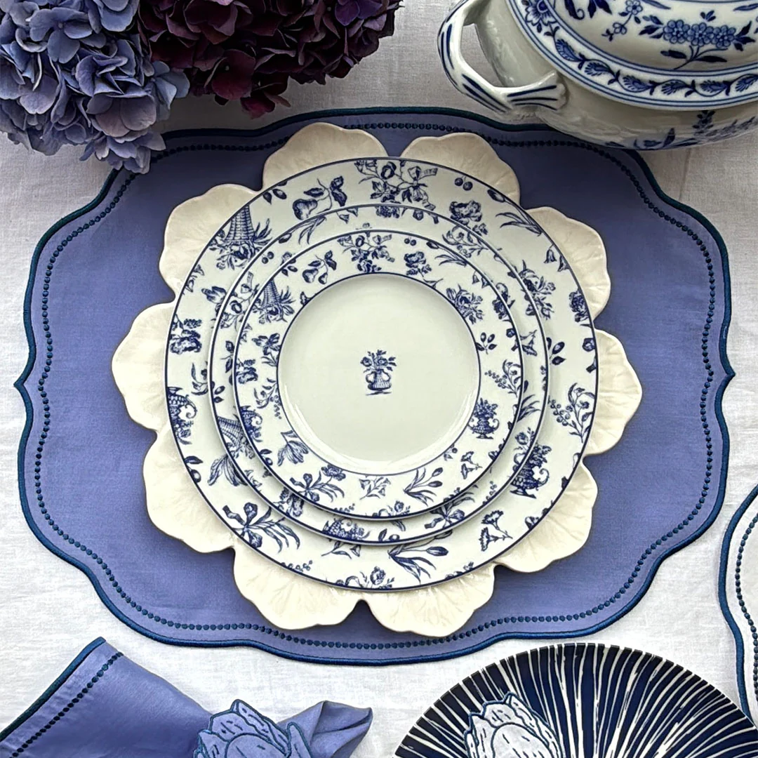 Un hermoso set de 4 platos de ensalada hechos en cerámica con decorados de guirnalda de muérdagos y un arbolito de navidad.