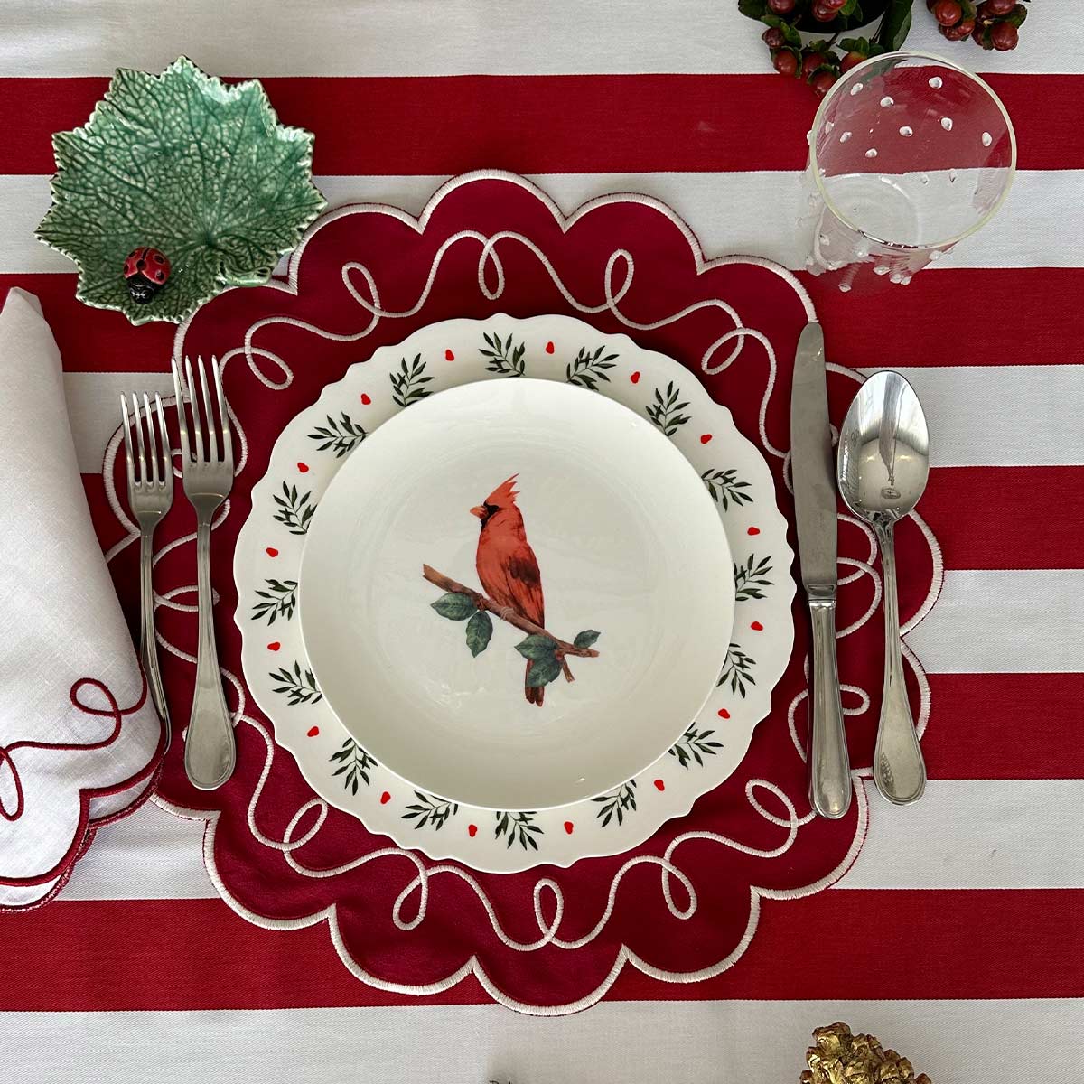 Platito de cerámica en forma de hoja con una catarina.