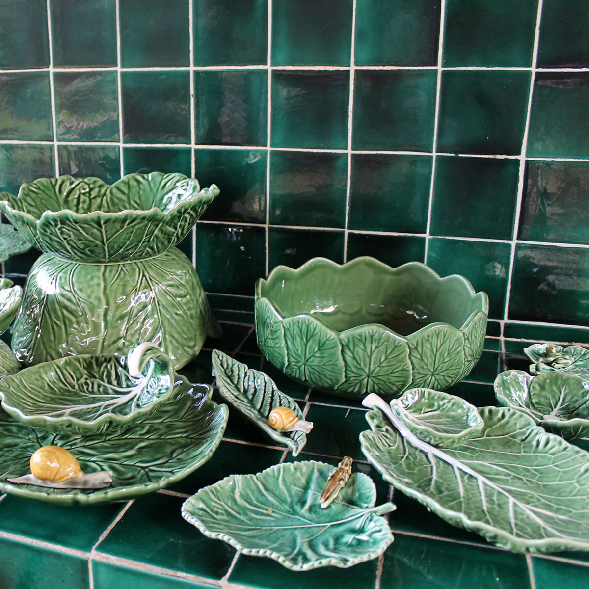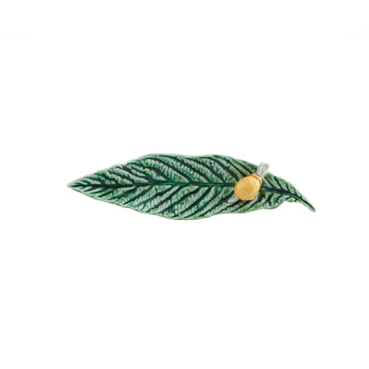 Platito de cerámica en forma de hoja con un caracol.