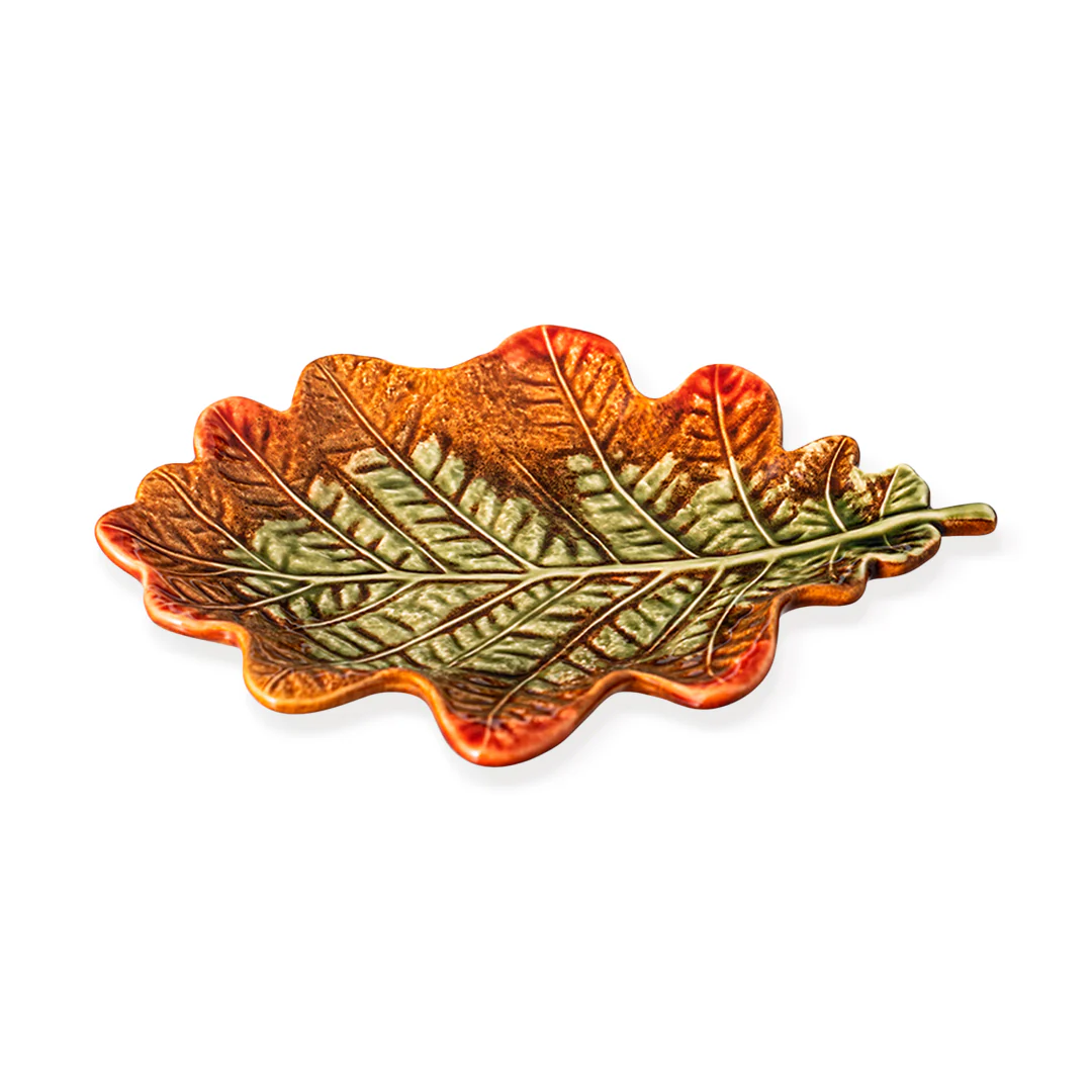 Hermoso plato para pan en forma de una hoja en tonos otoñales. El otoño llega a tu mesa con la nueva colección Gudrun diseñada por Claudia Schiffer para Bordallo Pinheiro.