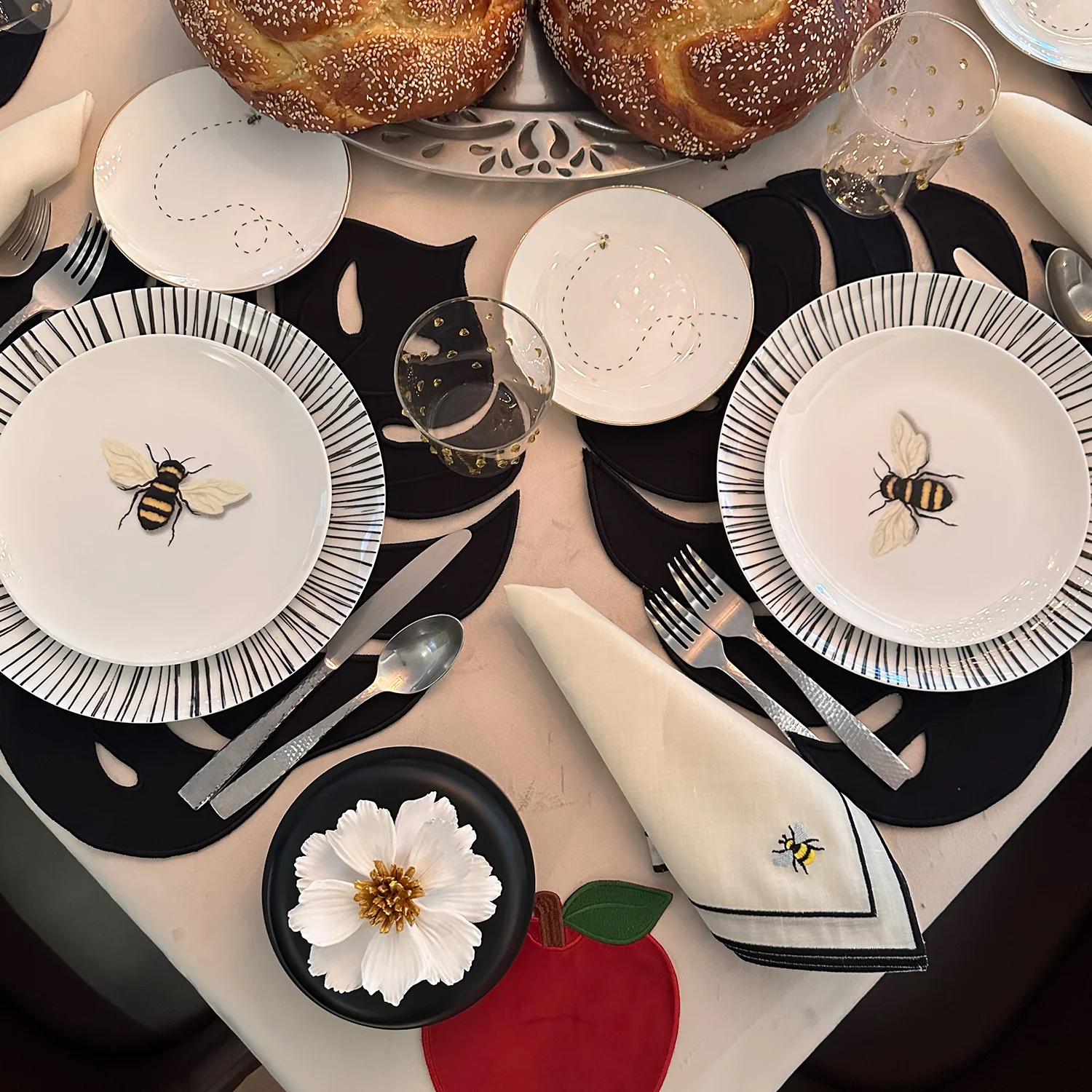 Juego de 4 platos para ensalada de porcelana con un dibujo ilustrado de abeja en exclusiva para ZASH, plato de 20 cm.