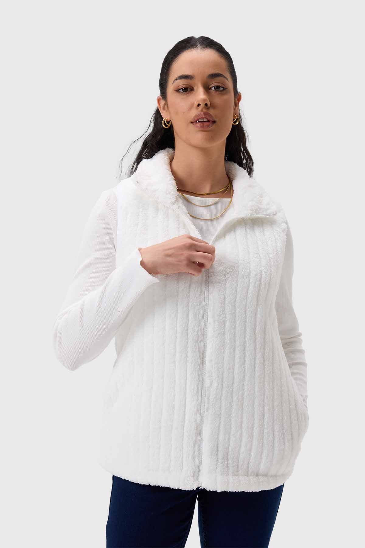 Descubre el polar mujer peludo con textura crudo, una prenda ideal para los dÃas frÃos. Su color blanco resalta la suavidad del material, brindando una sensación de abrigo ligero y comodidad. Con un diseño de textura que añade un toque especial, este polar es perfecto para combinar con tus jeans favoritos o leggings. Su estilo moderno y acogedor te hará sentir única y lista para cualquier ocasión. No dejes pasar la oportunidad de renovar tu look con esta prenda que realza tu identidad personal y te envuelve en calidez.